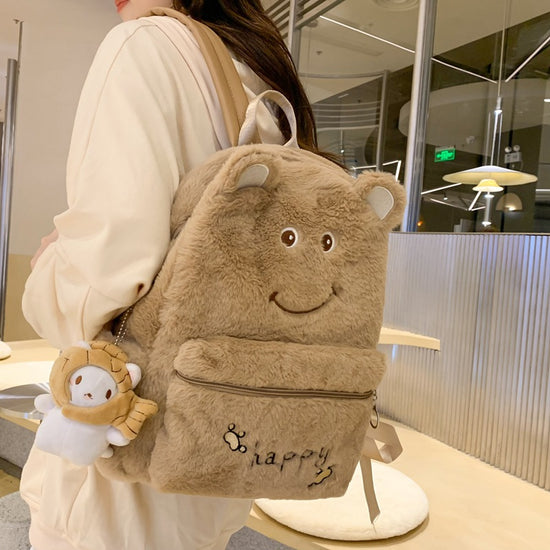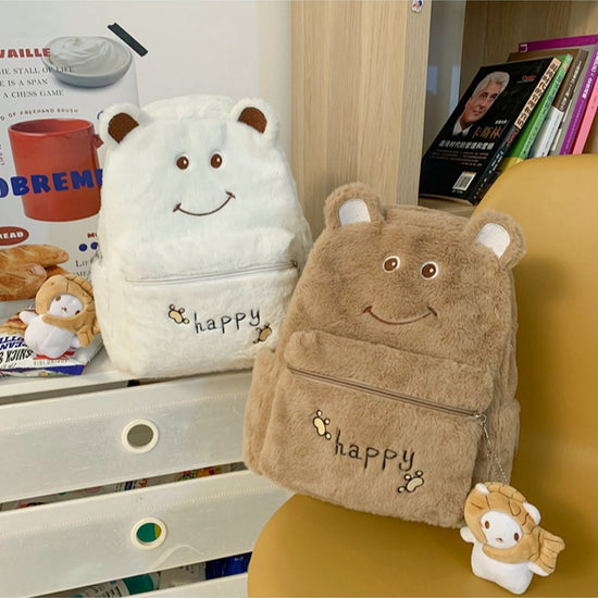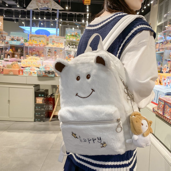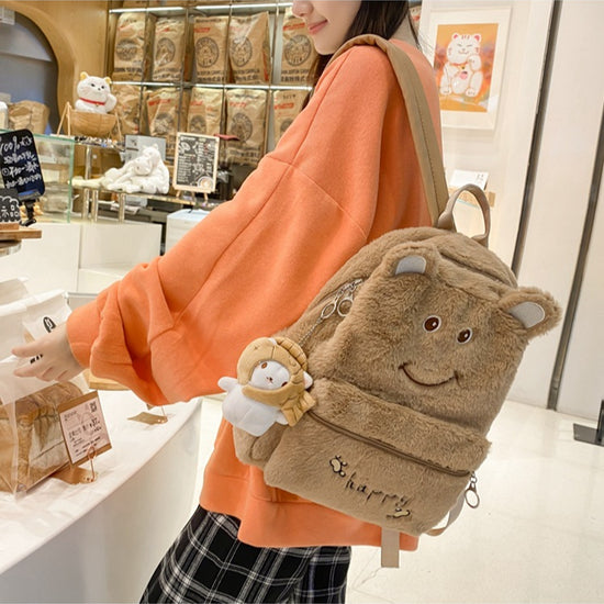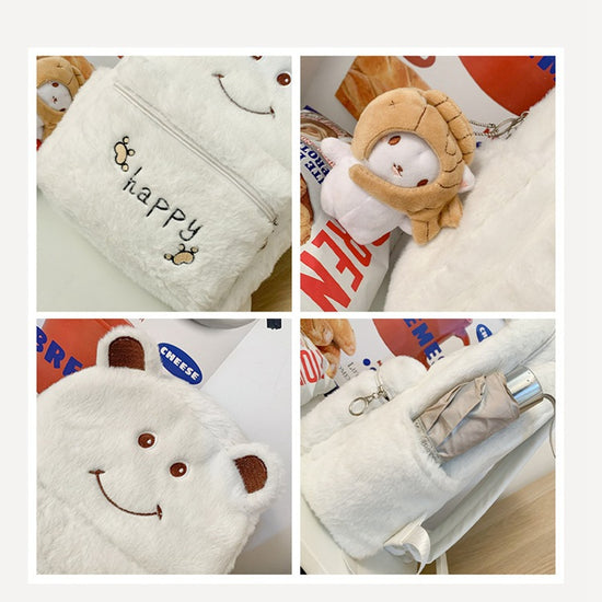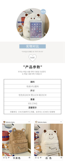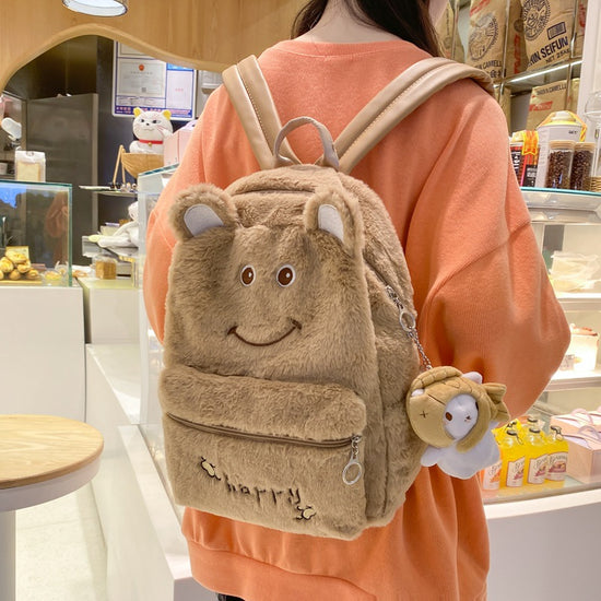 致青春|2024年新秋冬毛絨雙肩包可愛刺繡卡通毛毛書包學生大容量軟妹背包「1096-126」24.10-3