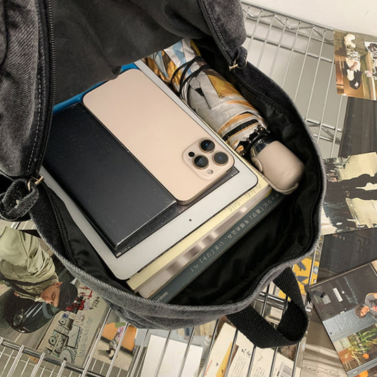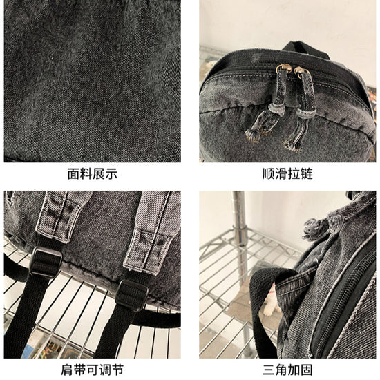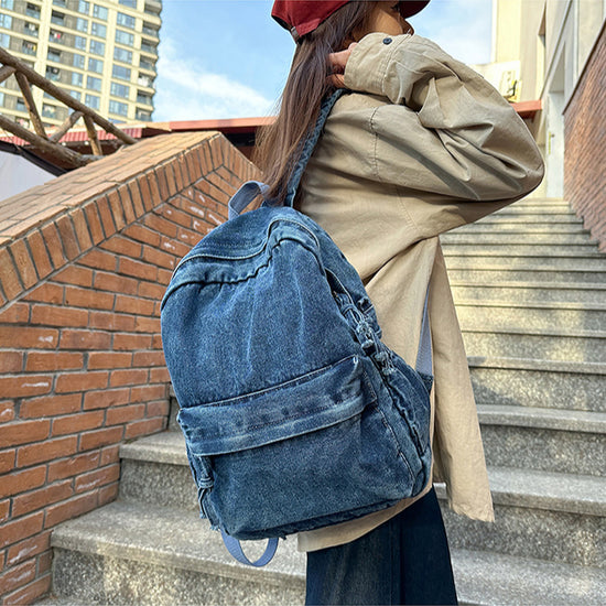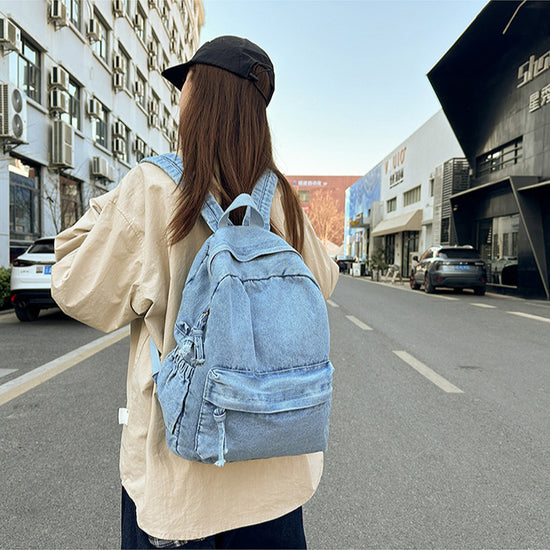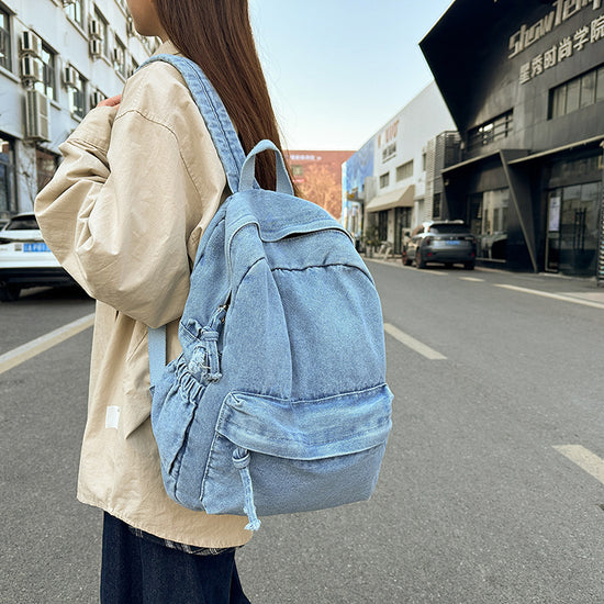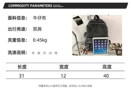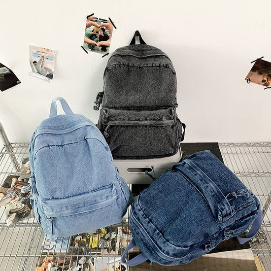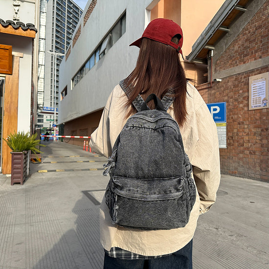 致青春|復古純色牛仔布雙肩包簡約大容量休閒旅行背包百搭國高中學生書包「1869-132」25.02-2