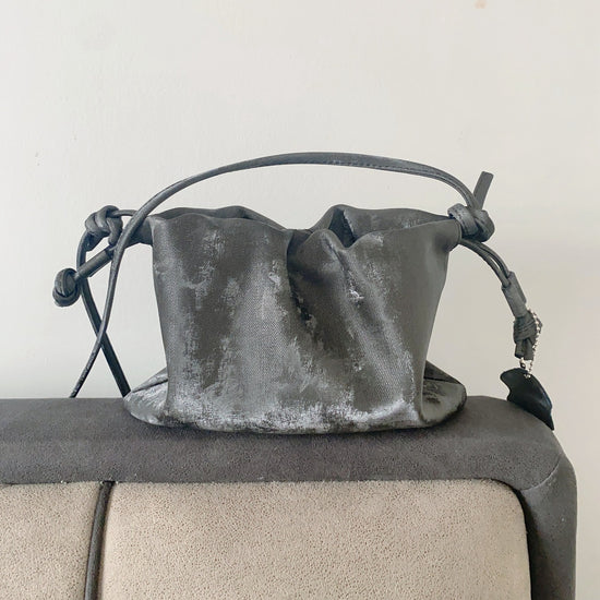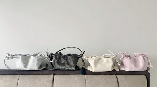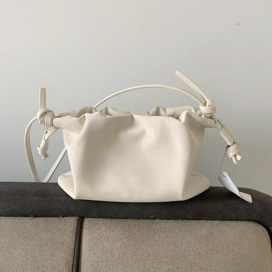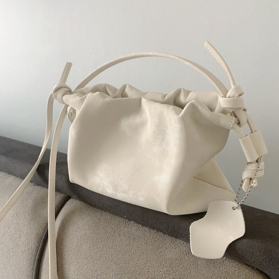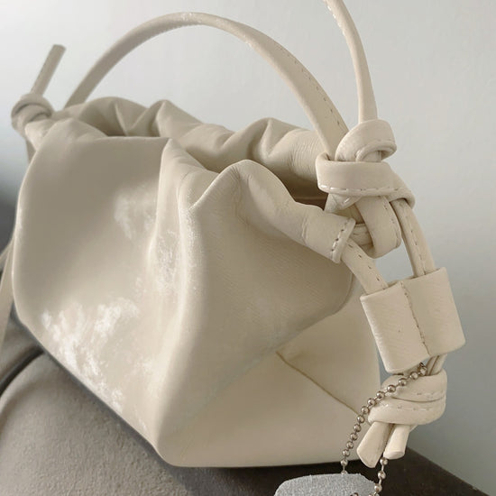 質感真皮|新中式褶皺雲朵包真皮女包時尚簡約包款女抽繩福袋餃子包「2430A」24.04-1