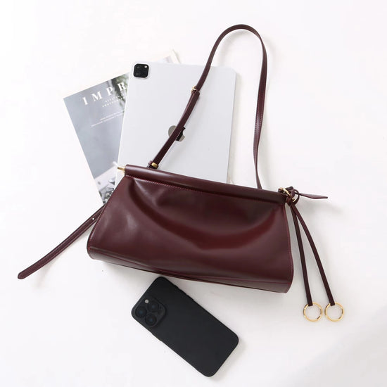 質感真皮|2025新款牛皮腋下復古法式法棍夾子包小眾設計極簡風通勤簡約包「3336」25.06-2