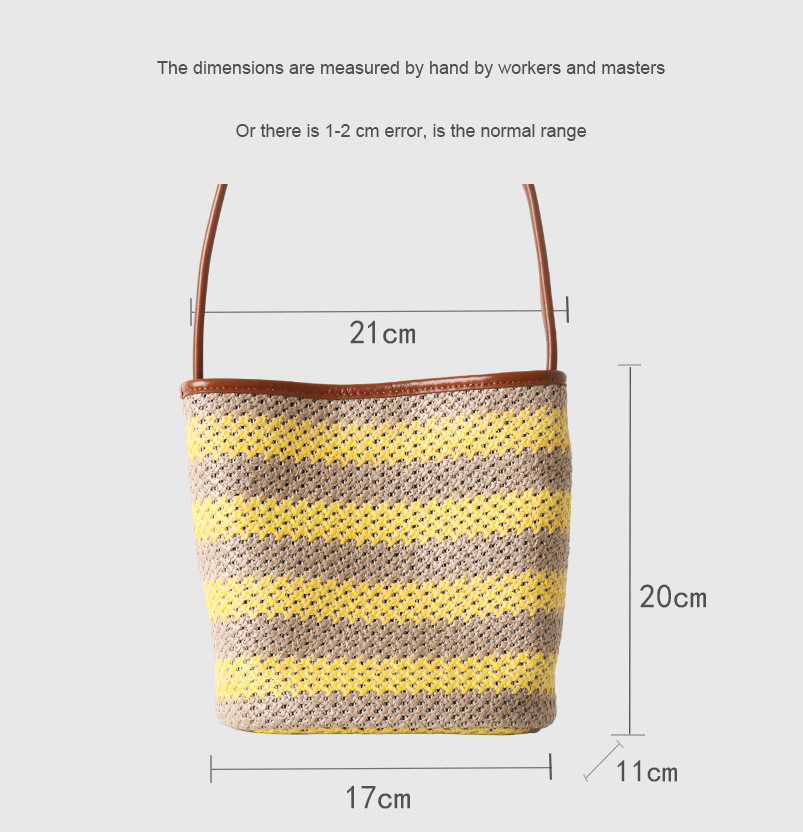 質感真皮|2025新款PP草配頭層牛皮輕奢小眾高級感水桶包海邊度假小雞黃沙灘草編包「3885-2」25.05-4