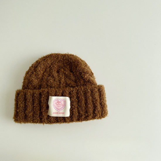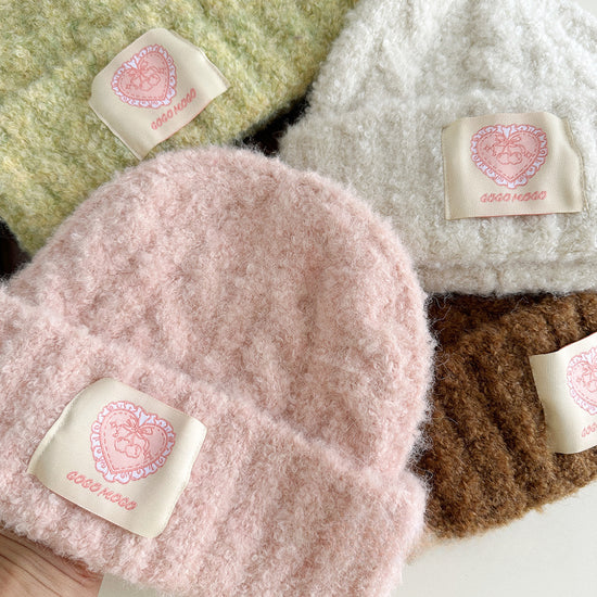 流行帽子|愛心標麻花條紋毛線帽女韓版百搭防風護耳加厚秋冬季保暖針織帽子「5344SG」24.10-1