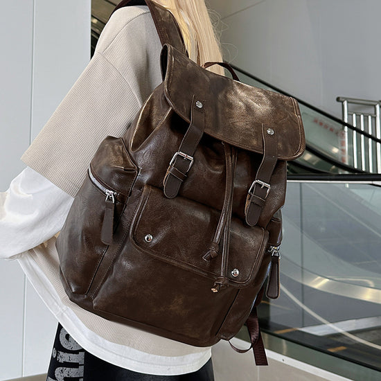 致青春|韓版PU雙肩包男防潑水情侶休閒旅行背包出差通勤商務質感雙肩包「5619-138」25.10-4