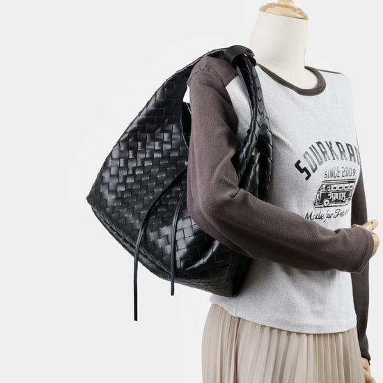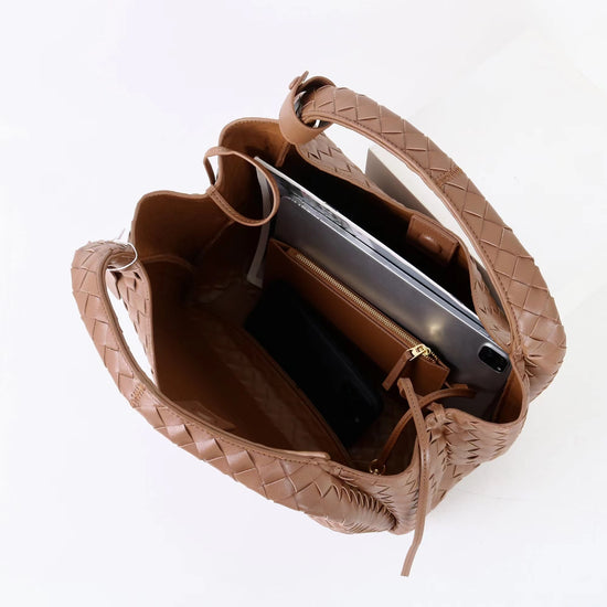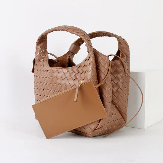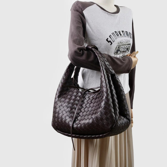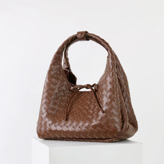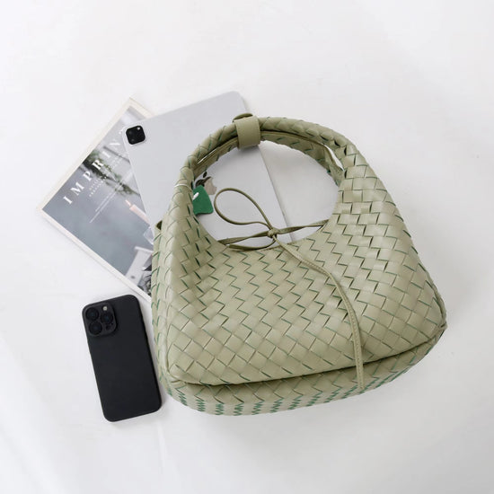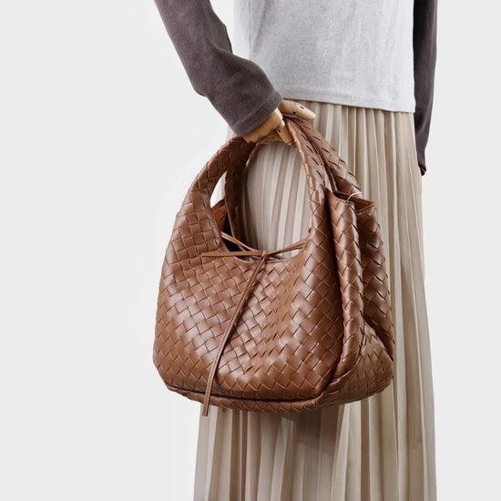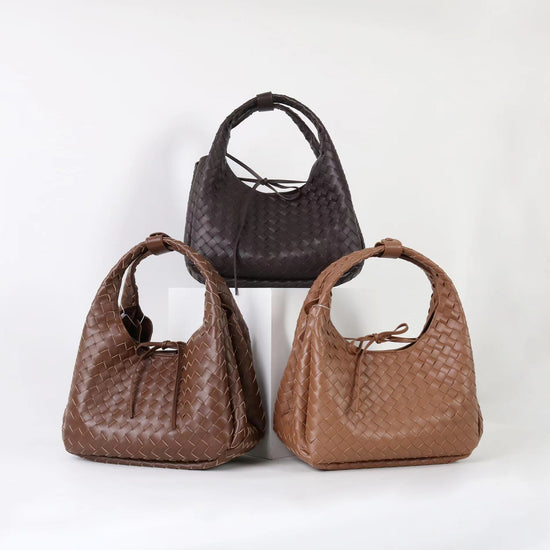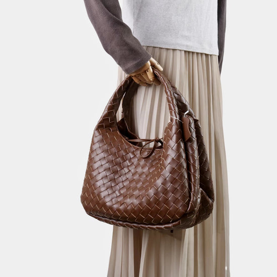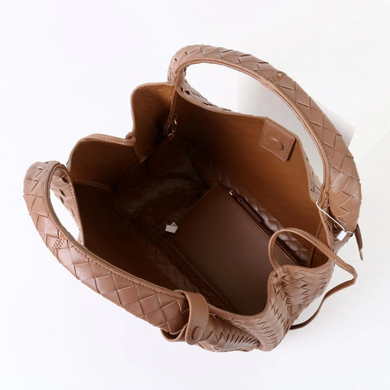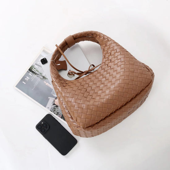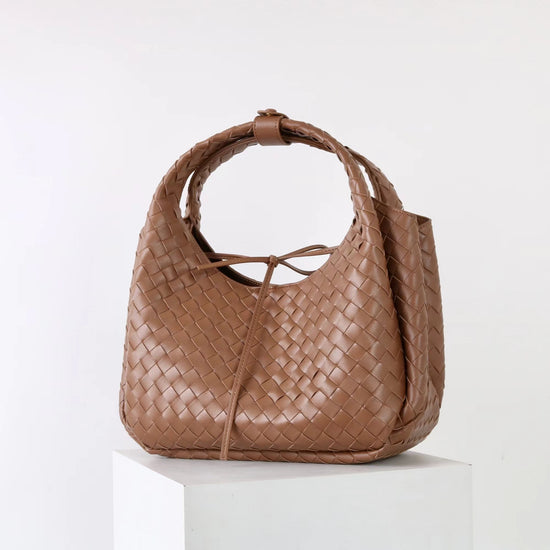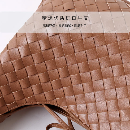 質感真皮|2025新進口牛皮手工編織包hobo腋下包通勤托特包大容量單肩女包「6070」25.10-2