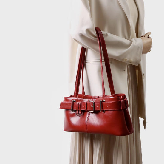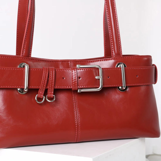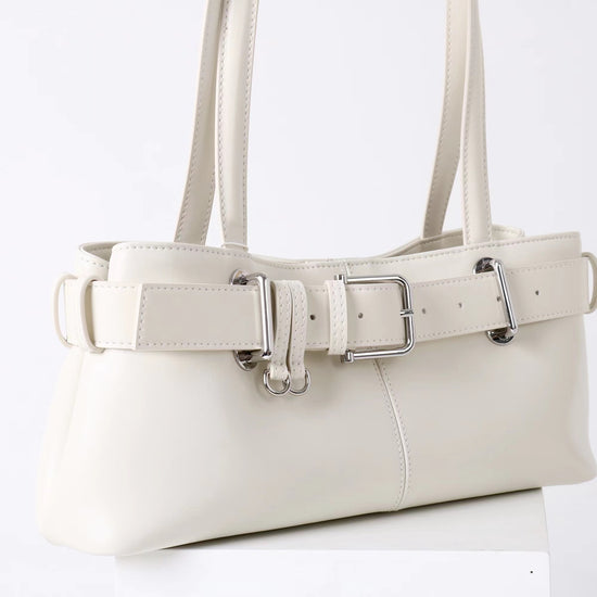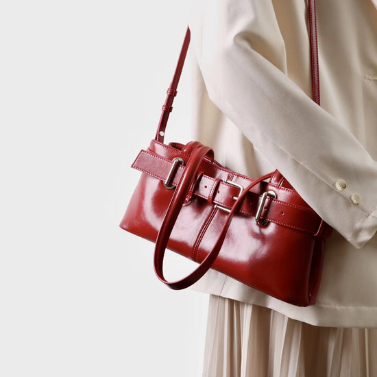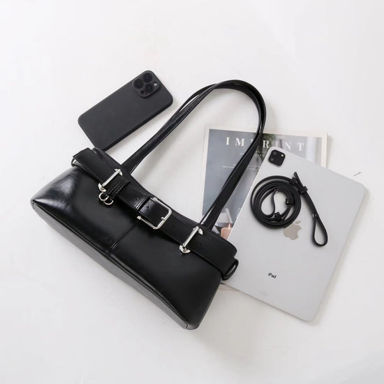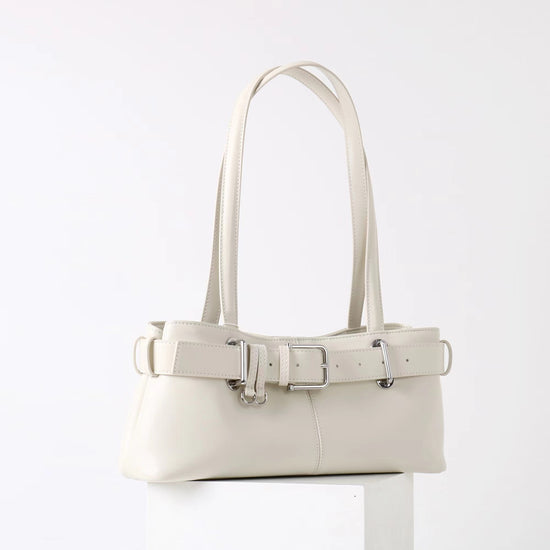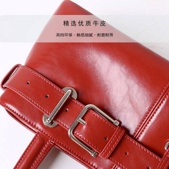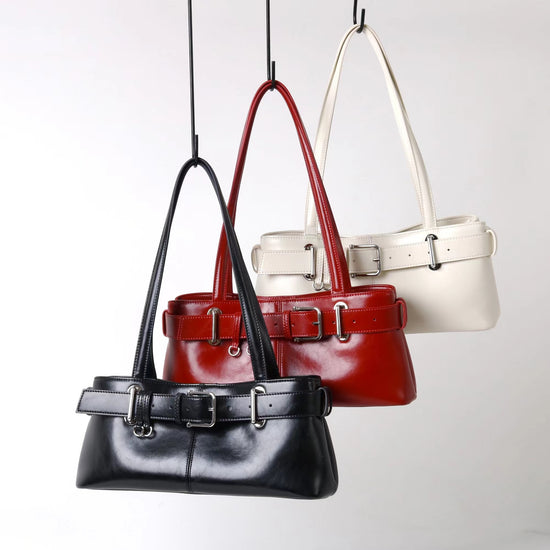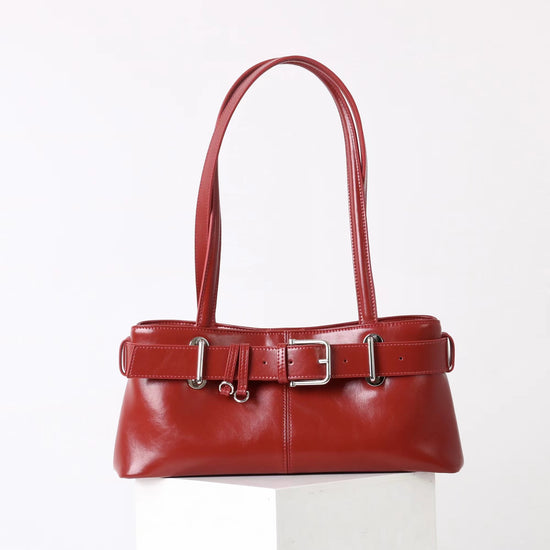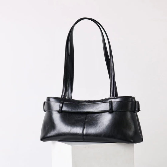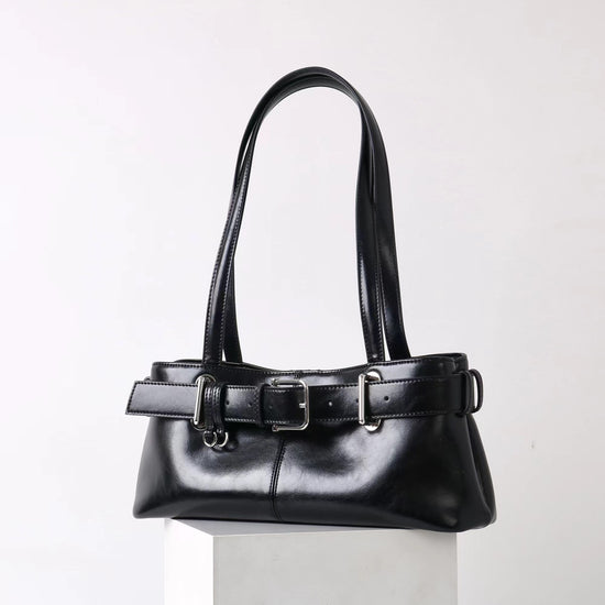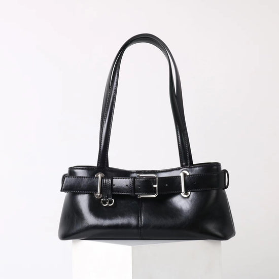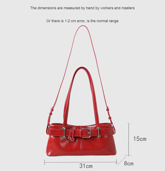質感真皮|2025新款百搭女輕奢法式高級感機車包法棍包保齡球女單肩腋下包「6147」25.06-4