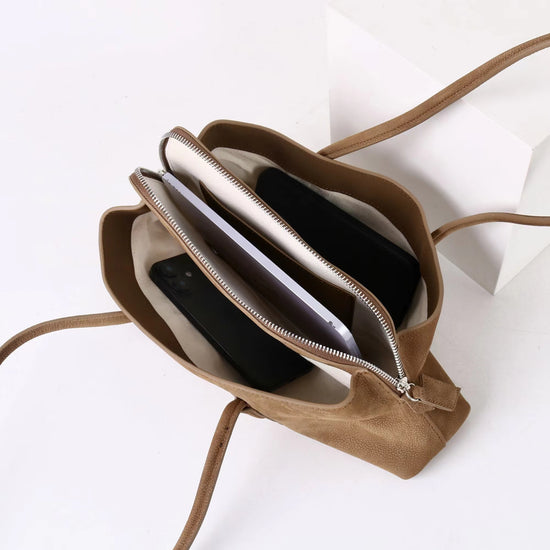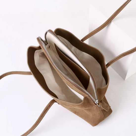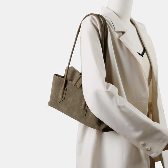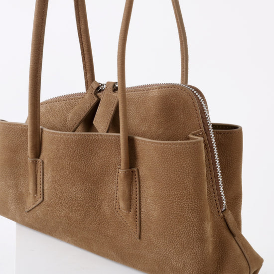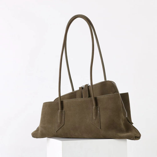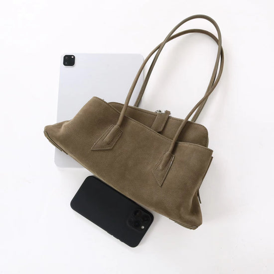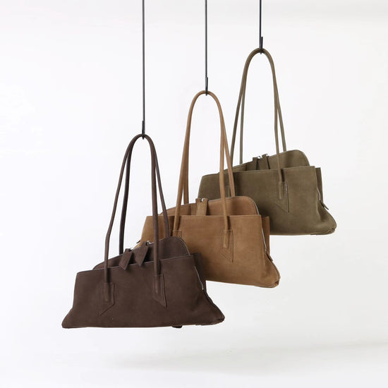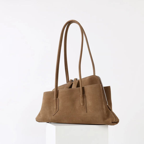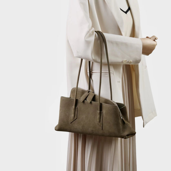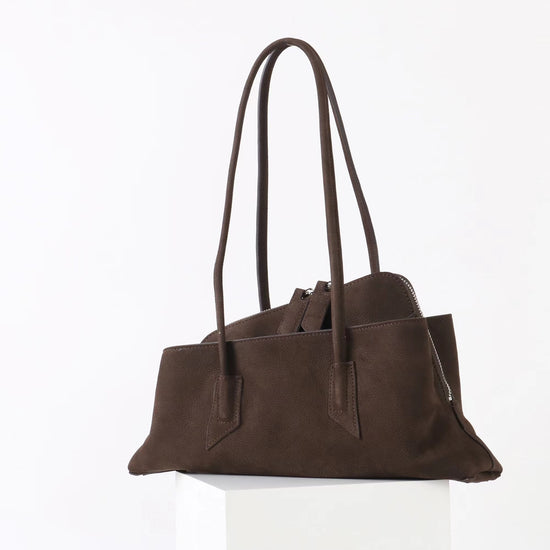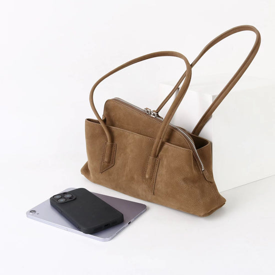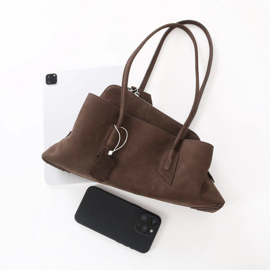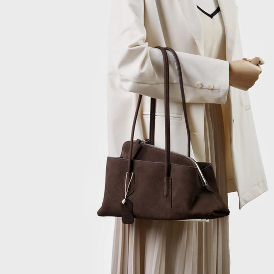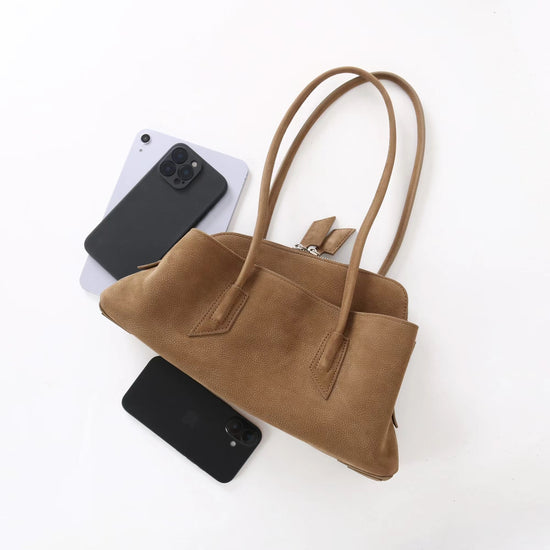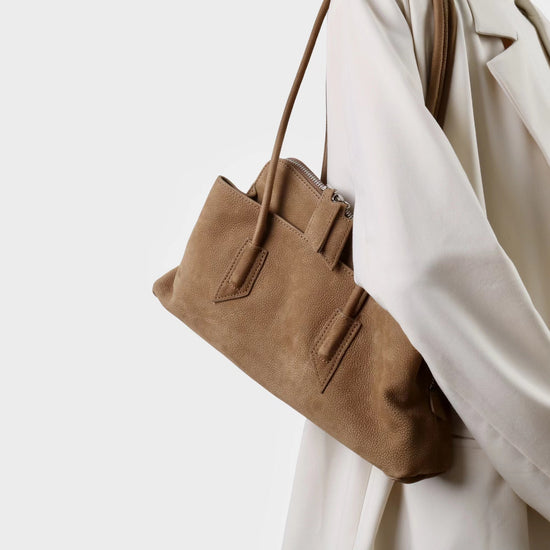 質感真皮|2025新款頭層麂皮不規則斜頂手提托特包磨砂荔枝牛皮腋下包「6163-S」25.10-1