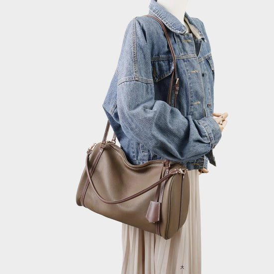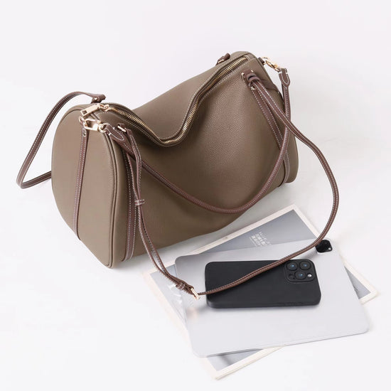 質感真皮|2025新頭層牛皮保齡球腋下包托特包波士頓枕頭包手提單肩斜挎包「6189」25.11-4