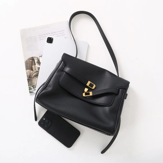 質感真皮|2025新款通勤復古百搭單肩斜背包外出上班公文包女包時尚潮流單肩包「6191L」25.12-1