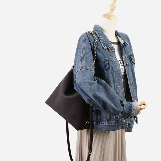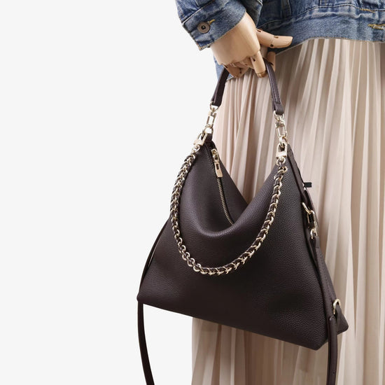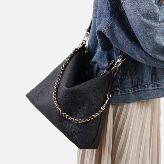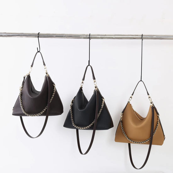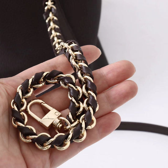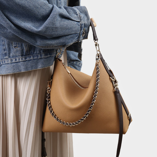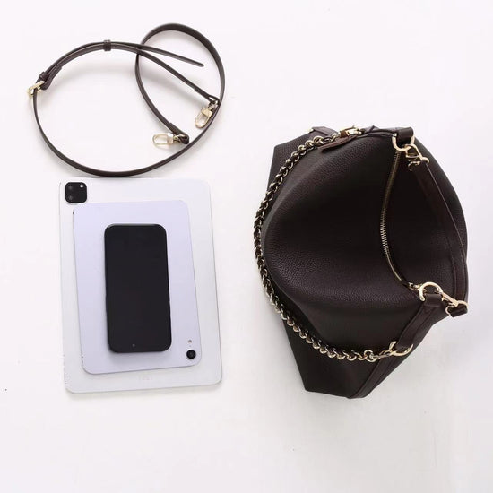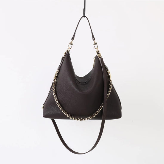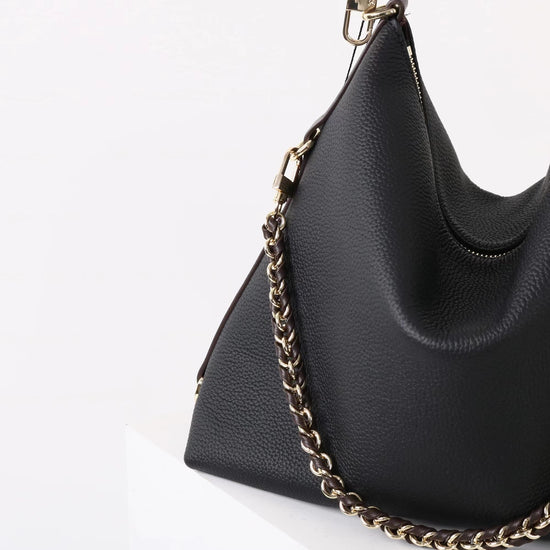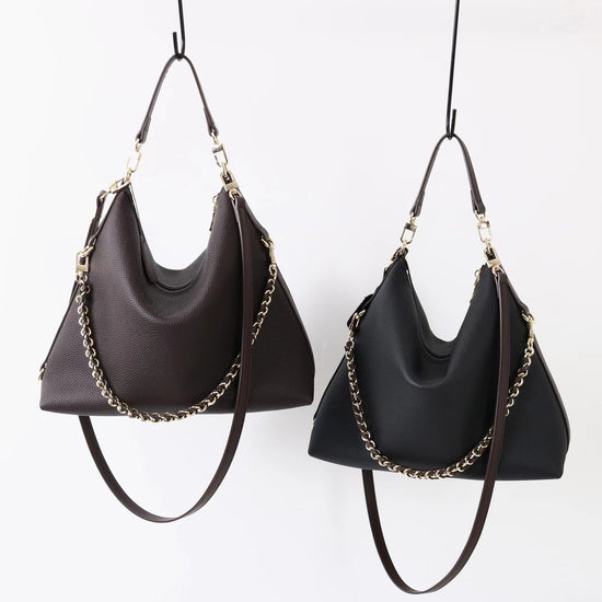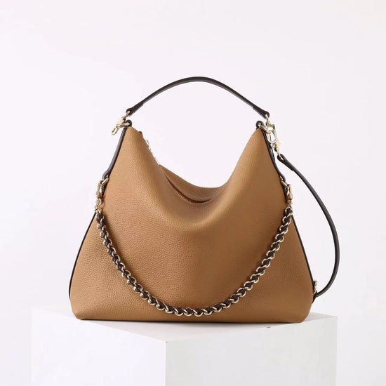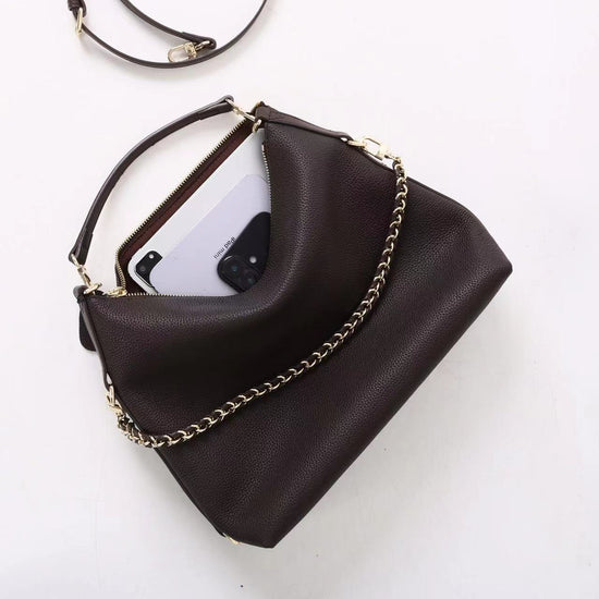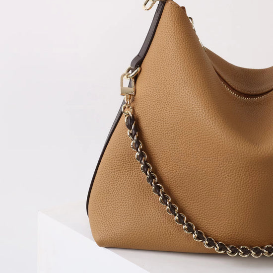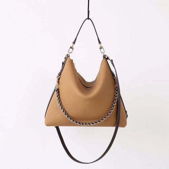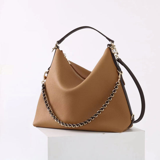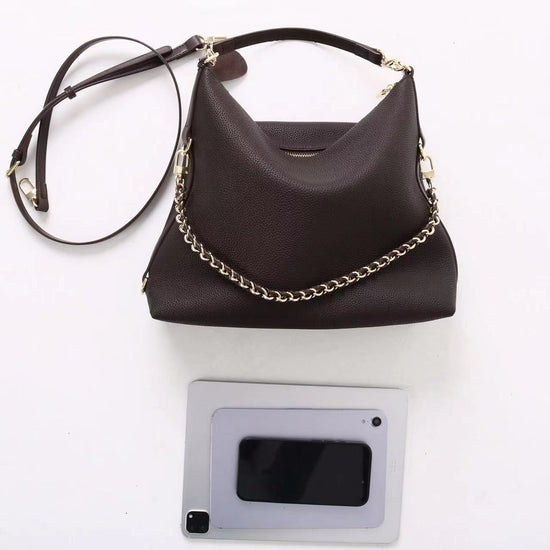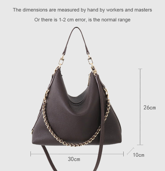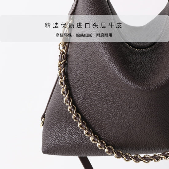 質感真皮|2025新款潮流時尚百搭休閒頭層軟牛皮鏈條荔枝紋單肩包斜挎通勤托特包「6667」25.12-2