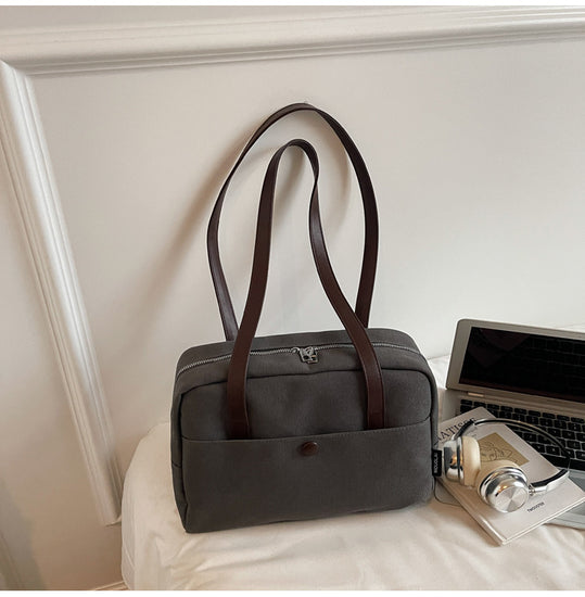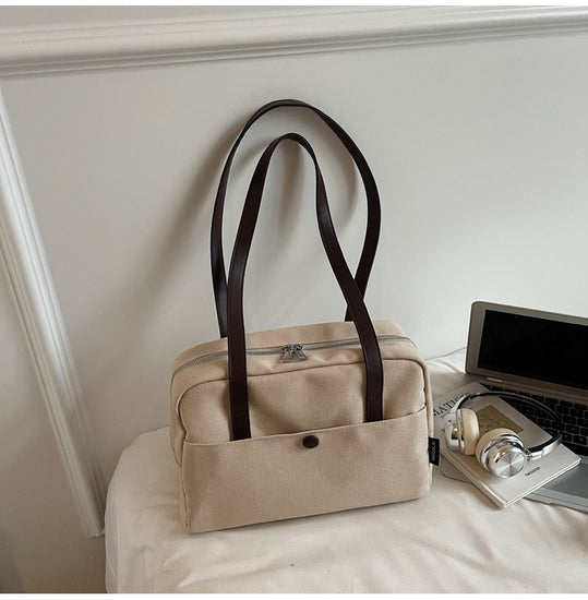 致青春|大容量帆布包女2025新款復古洋氣單肩包上班通勤托特包「6673-125」25.10-4