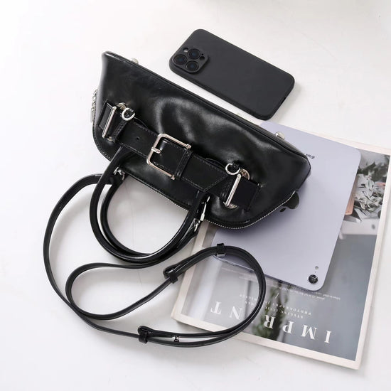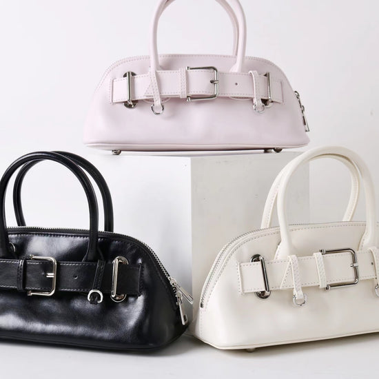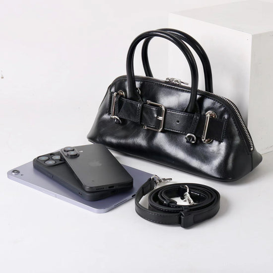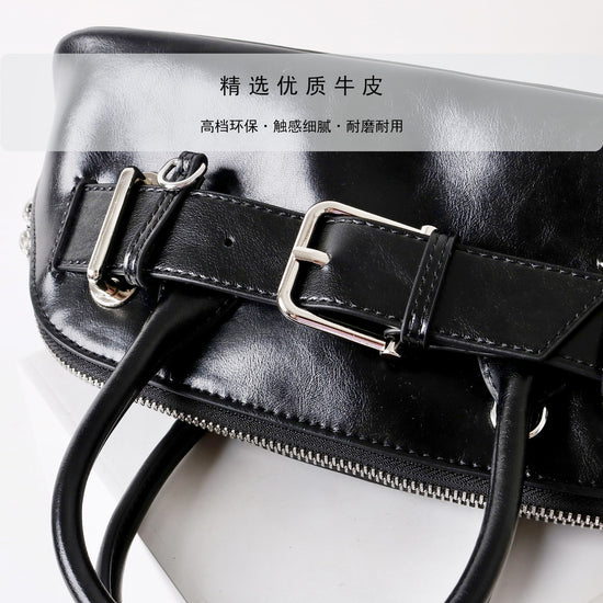 質感真皮|2025新款百搭手提包時尚優雅肩斜背包韓國小眾手提保齡球包包「6717」25.07-2