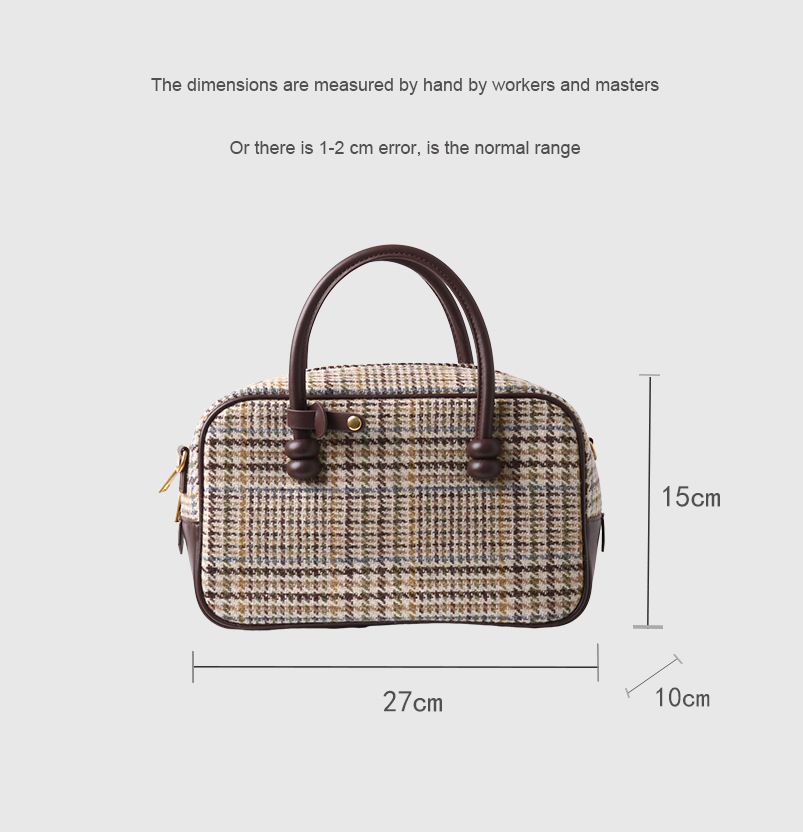 質感真皮|2024秋冬新款千鳥格保齡球包女小眾設計單肩斜背波士頓枕頭包「6897」24.11-1