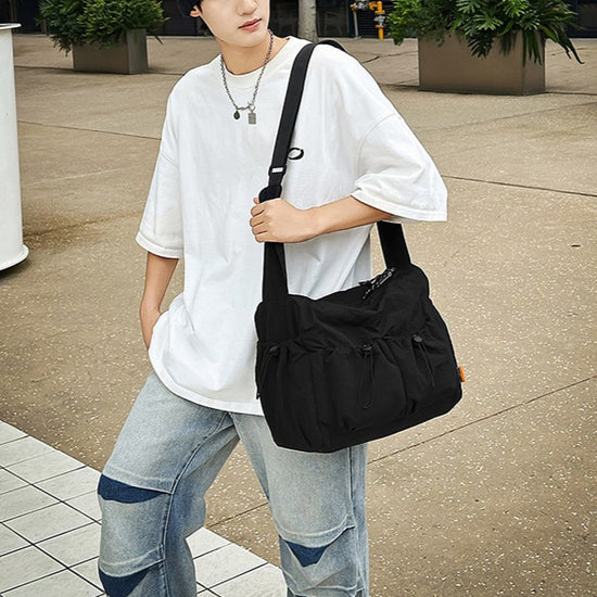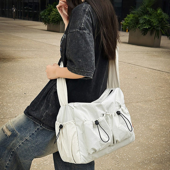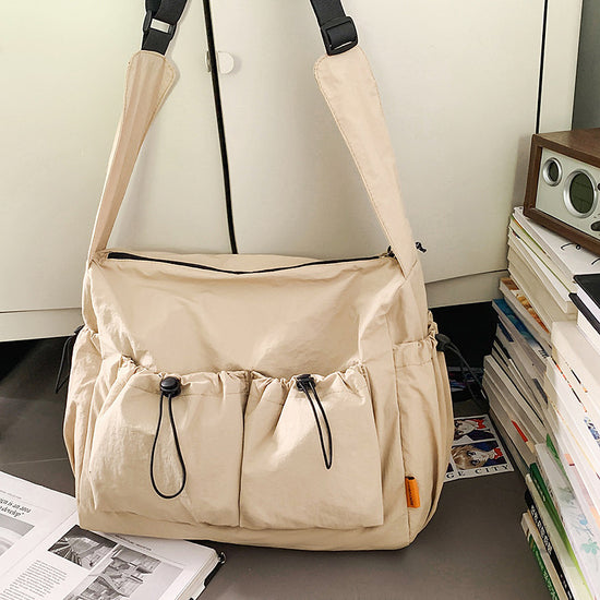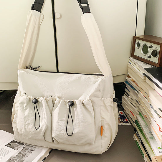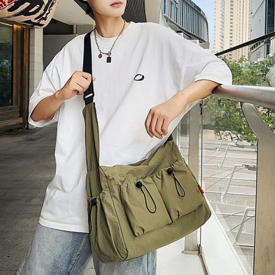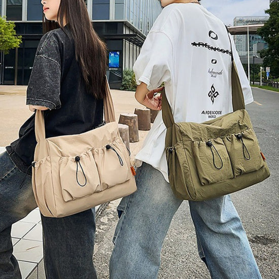 致青春|日系ins新款高顏值潮酷工裝風多口袋托特包情侶輕便大容量斜挎包「695-123」25.10-1