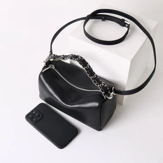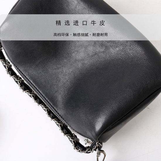 質感真皮|2025新款高級感枕頭包女牛皮大容量手提單肩包斜背包小眾設計包包「7014」25.07-1