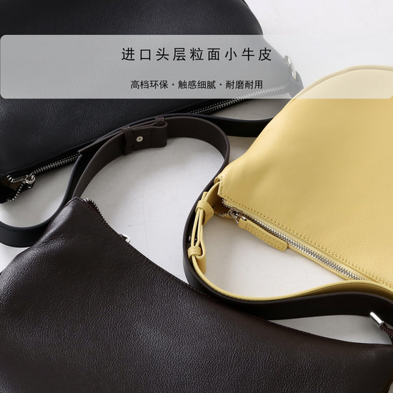 質感真皮|2025新款小眾休閒百搭頭層粒面小牛皮腋下韓版半月包柔軟牛皮斜挎「7031」25.06-3