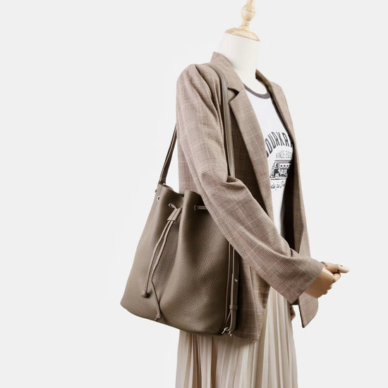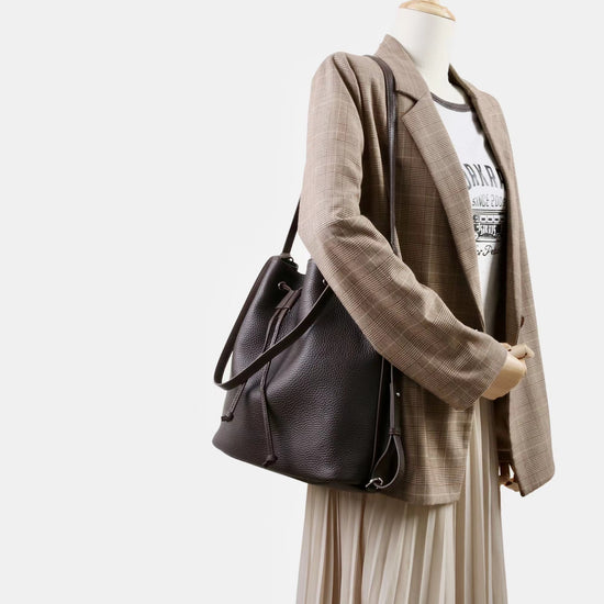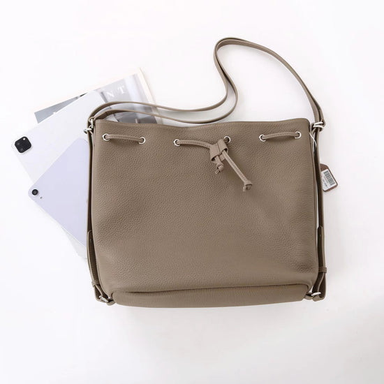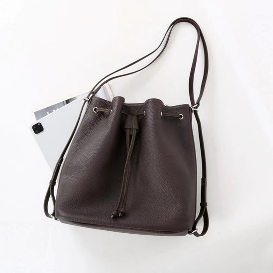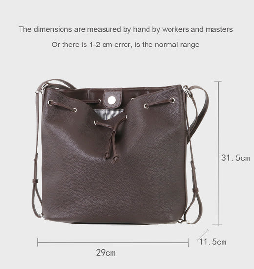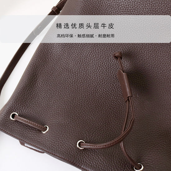 質感真皮|2025新款時尚歐美氣質頭層牛皮雙肩水桶包百搭斜挎單肩斜挎高級感「7061」25.11-1