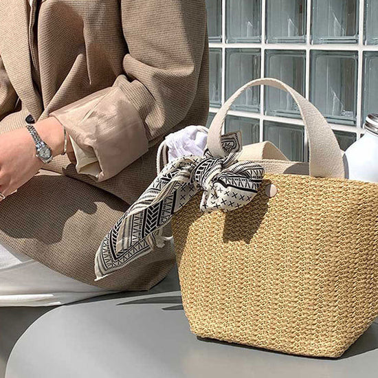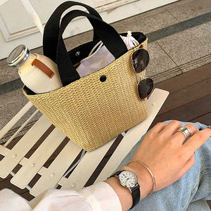 日韓流行|ins2024新編織包復古休閒手提草編包夏季海邊沙灘度假水桶包便當包「8264#」24.07-2