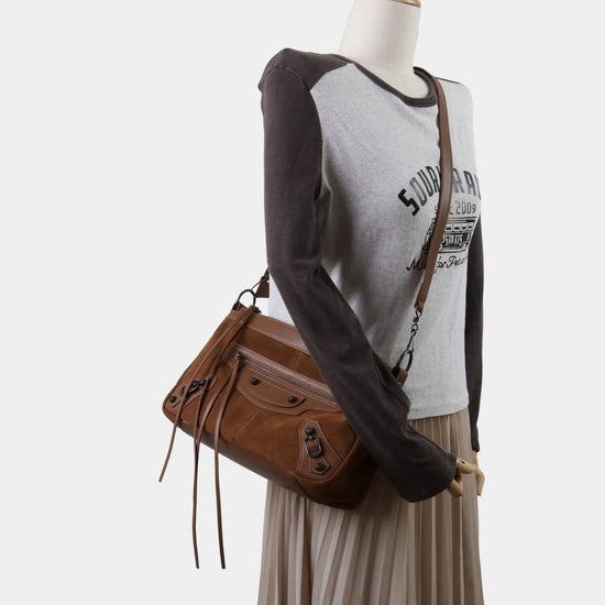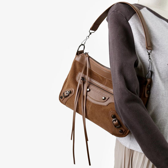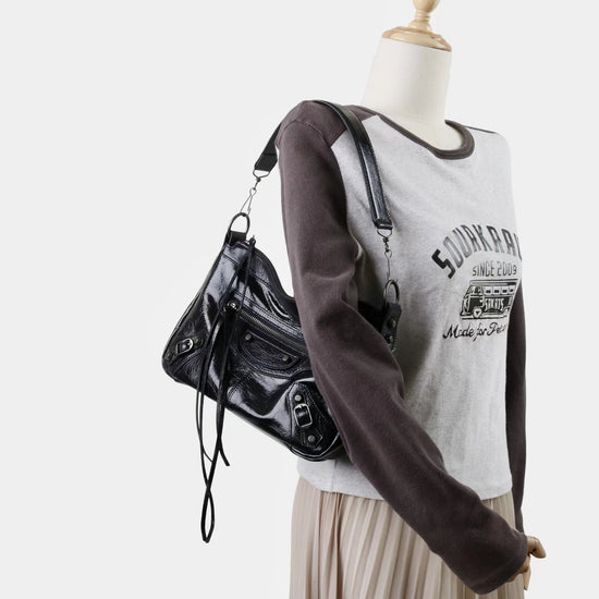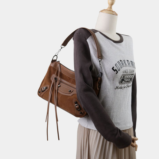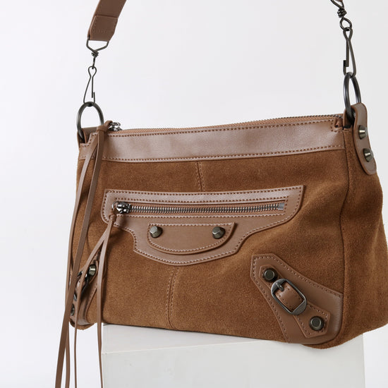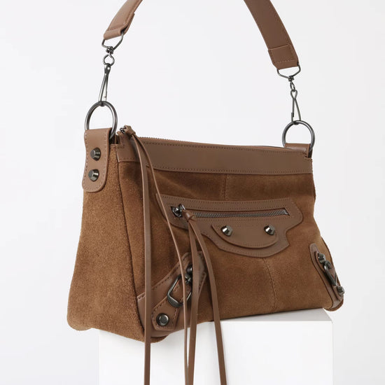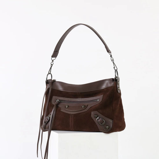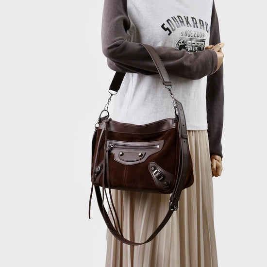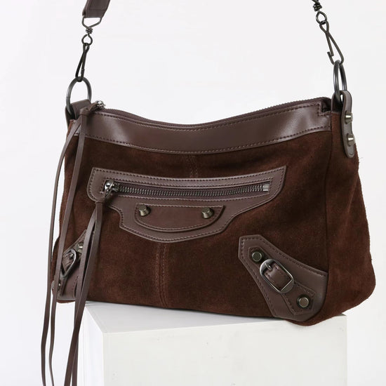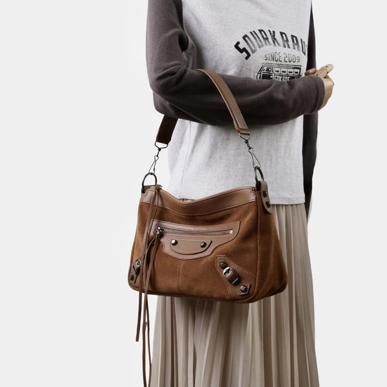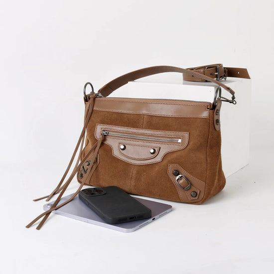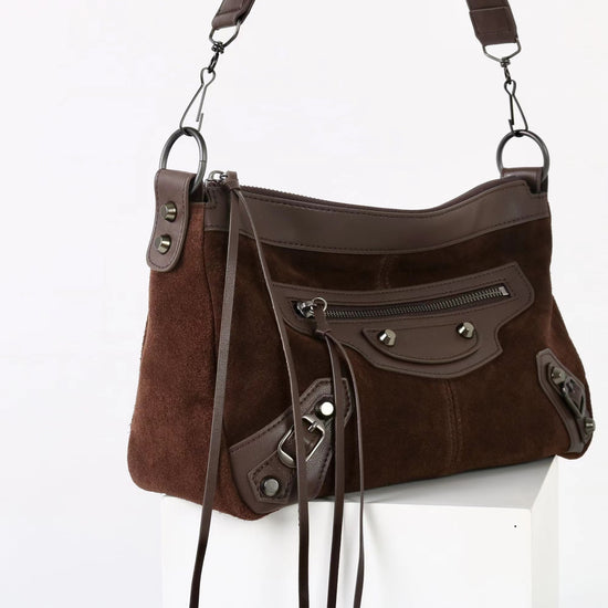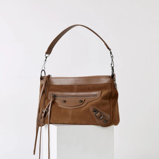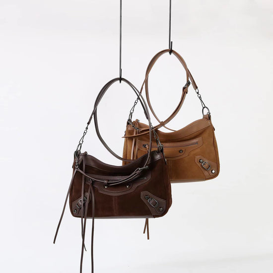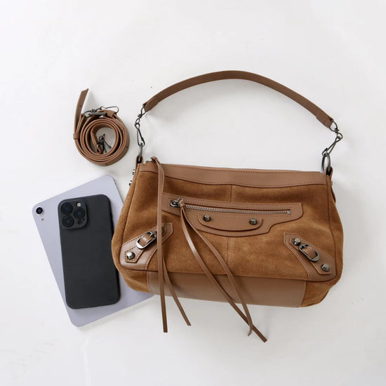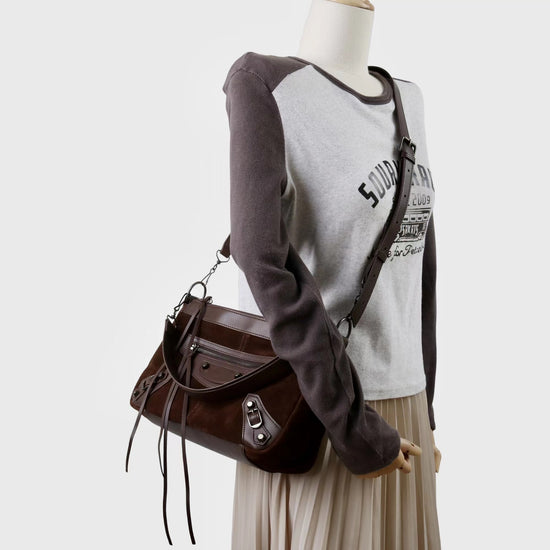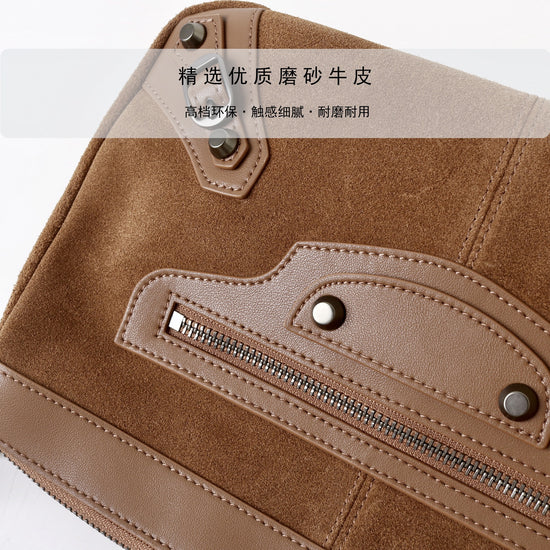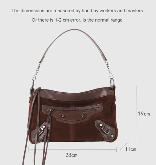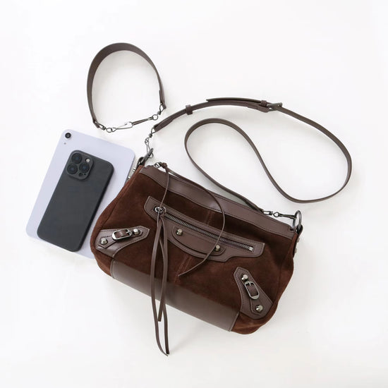 質感真皮|2025新款時尚歐美氣質磨砂休閒拼色鉚釘小眾韓版斜背包高級感機車包「8267」25.10-3