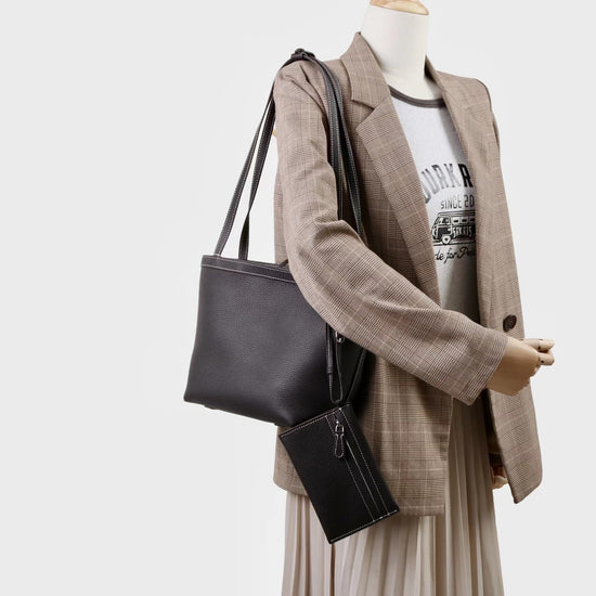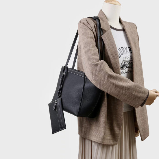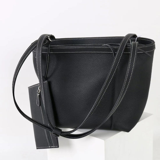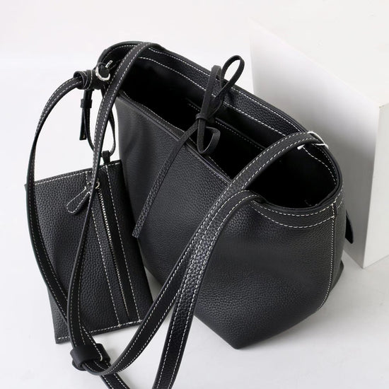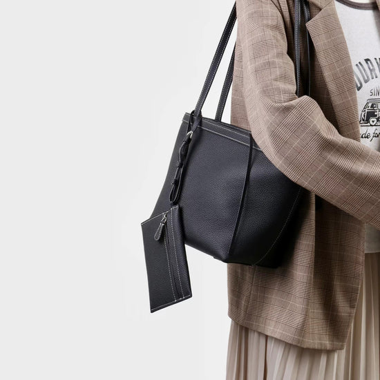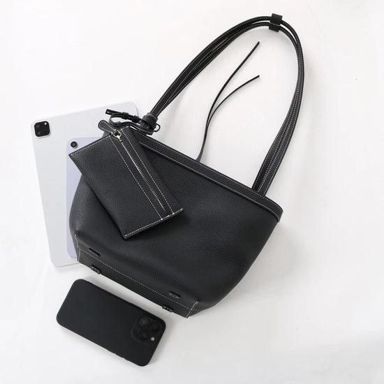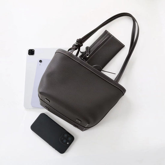 質感真皮|2025新款牛皮復古時尚單肩手提包百搭高級感托特包子母包通勤極簡包「8271」25.11-2