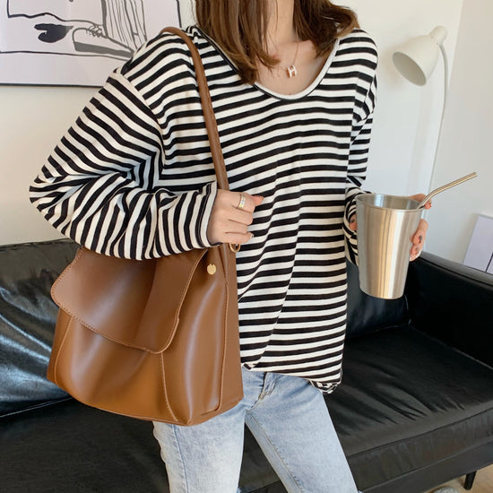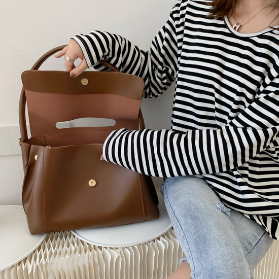 日韓流行|2025新款潮秋冬歐美時尚高級感單肩手提托特包百搭復古翻蓋腋下包「8500#」25.11-2