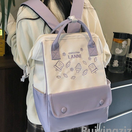 致青春|春季新書包女日系ins撞色中小學生手提雙肩包韓版ins學院風背包「876-360」24.04-1
