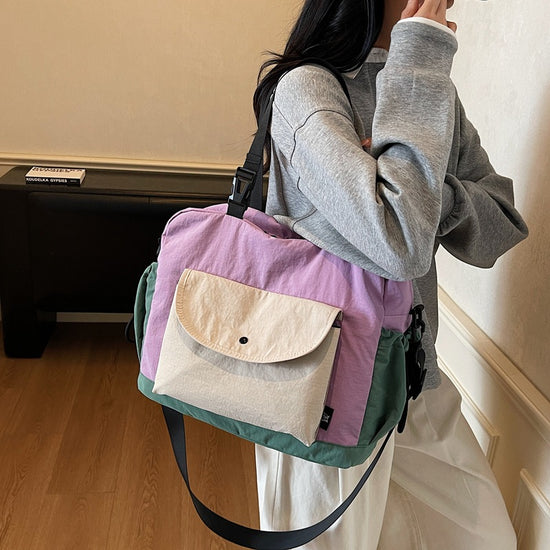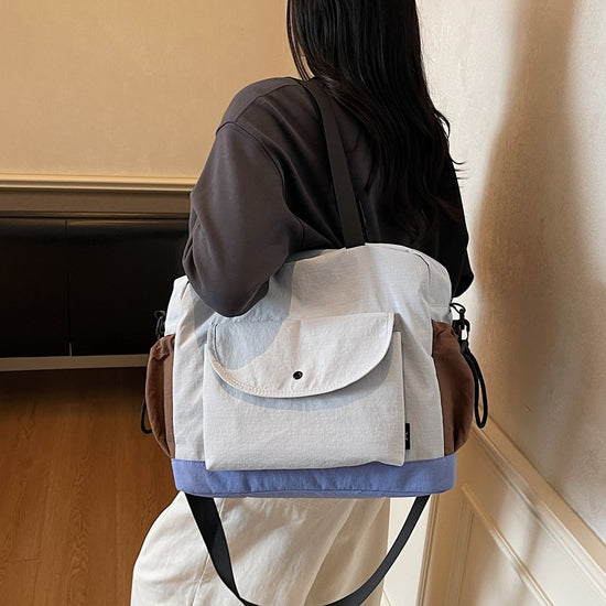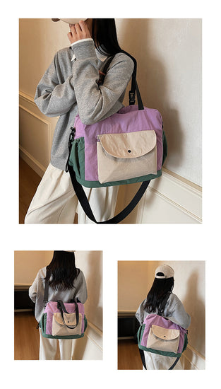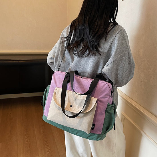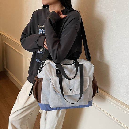致青春|韓版拼接撞色韓版布包2025新款高級感大容量通勤單肩斜背包「8831-130」25.11-2