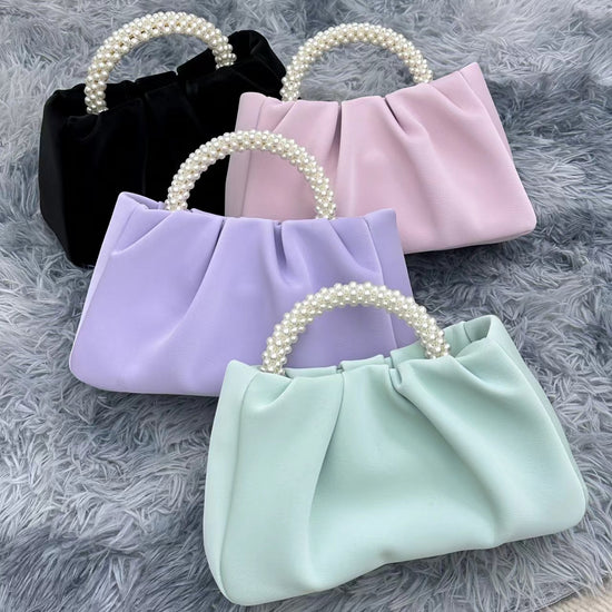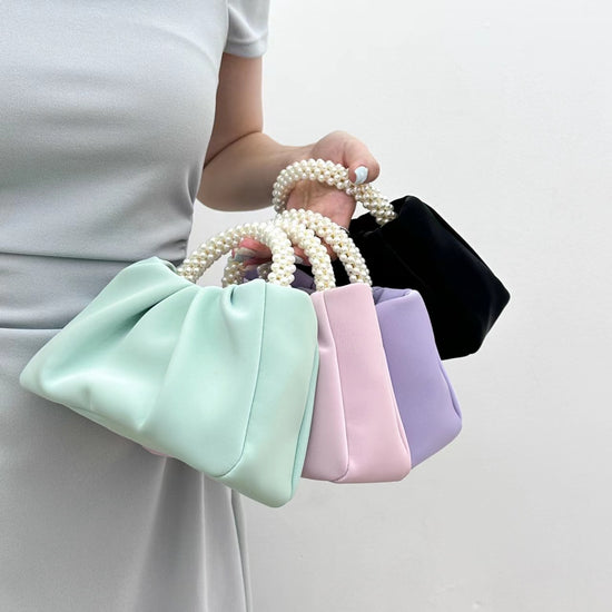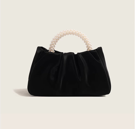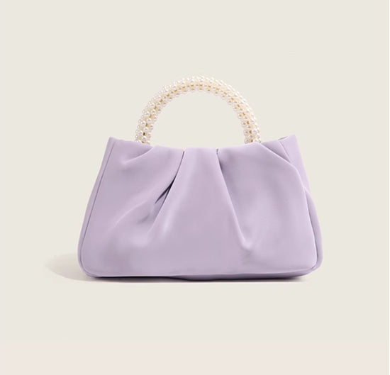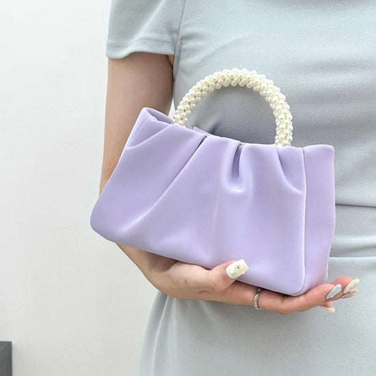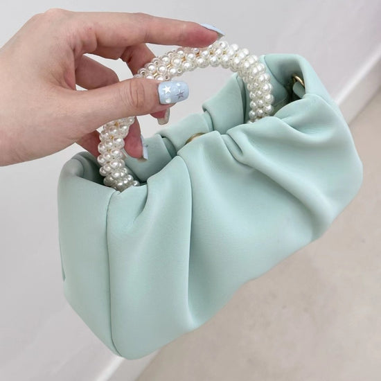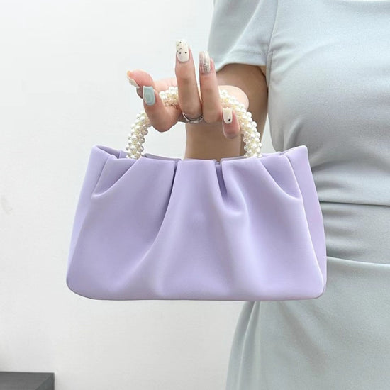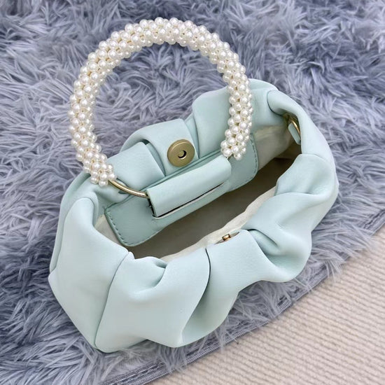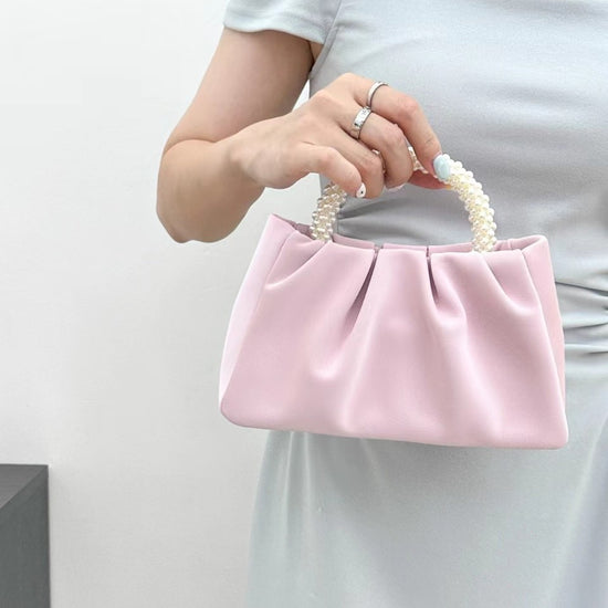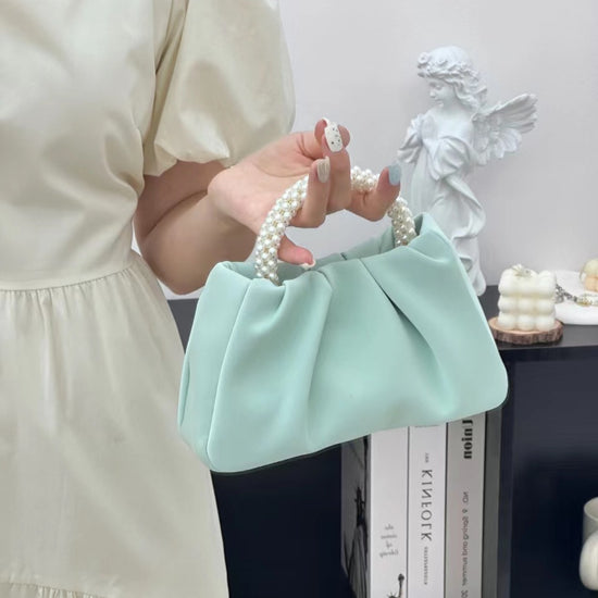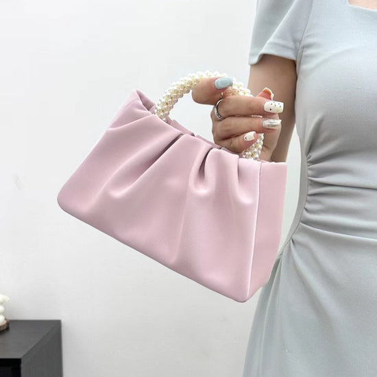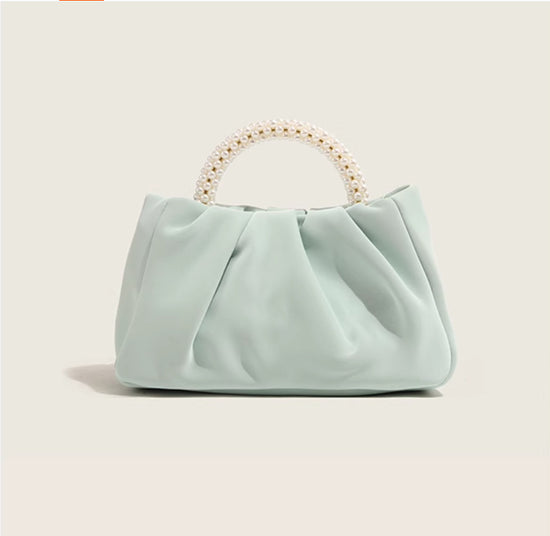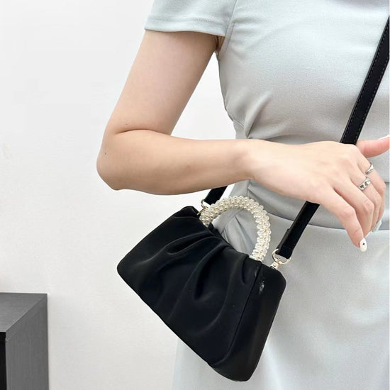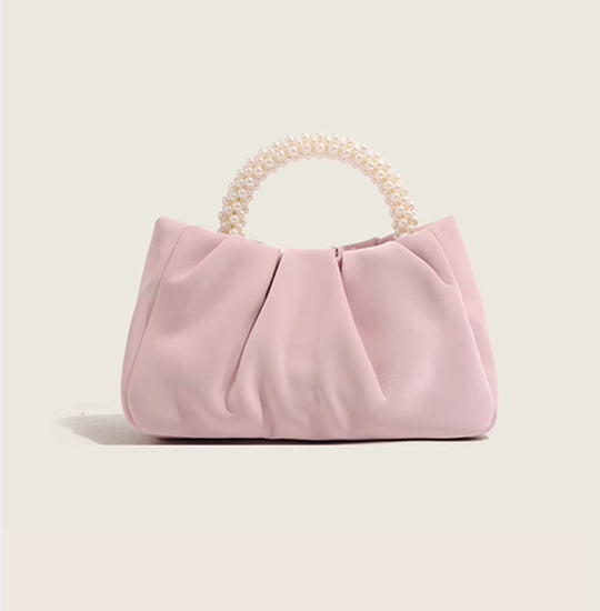 日韓流行|包包女2025新款潮時尚圓形珍珠手提褶皺雲朵包小眾氣質單肩斜挎包「9013#」25.02-1