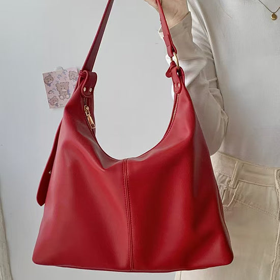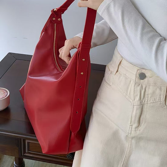 日韓流行|紅色新娘復古大容量托特包包女新款高級感秋冬包包百搭單肩包婚包「9016#」25.02-1