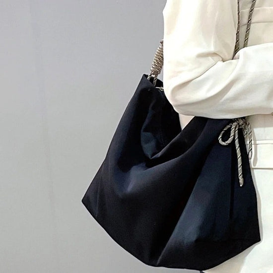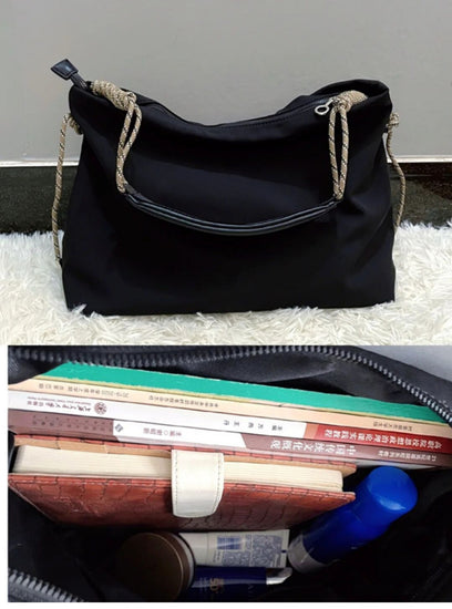 日韓流行|2024新學院風牛津布大容量休閒繩結可調日系托特包單肩斜挎包「9309#」24.03-2