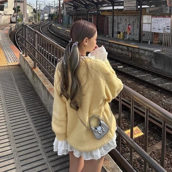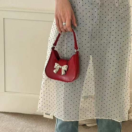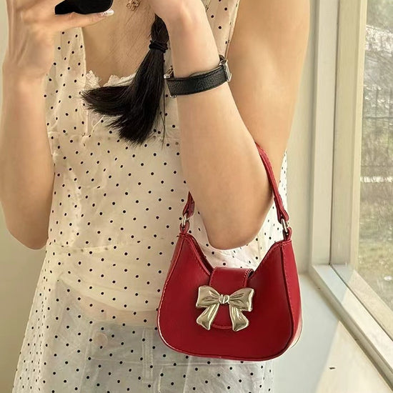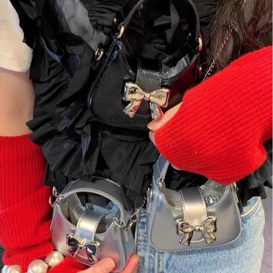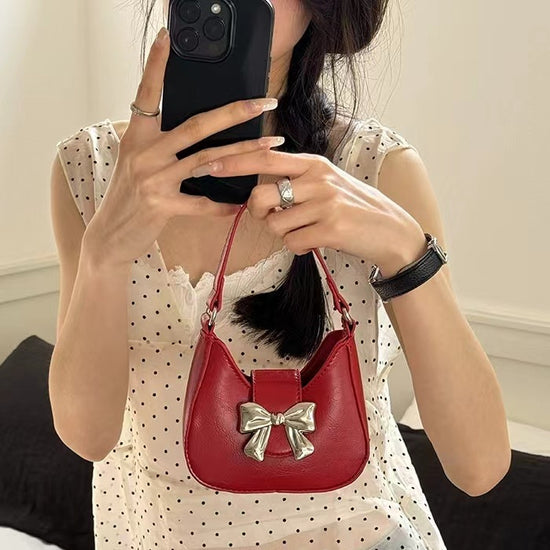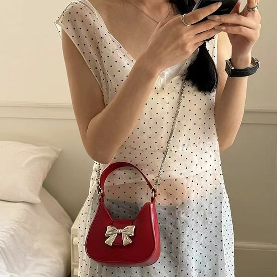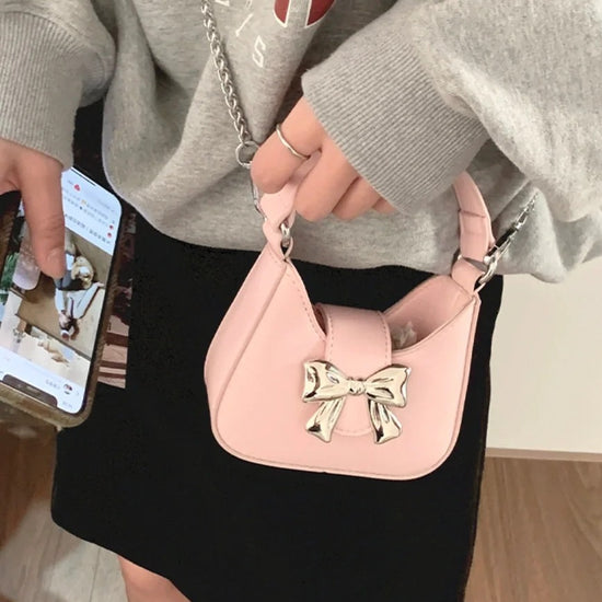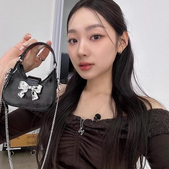日韓流行|韓國2024新款蝴蝶結金屬扣迷你單肩手提包口紅耳機包鏈條斜挎包女「9325#」24.04-1