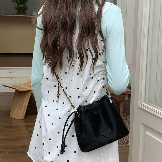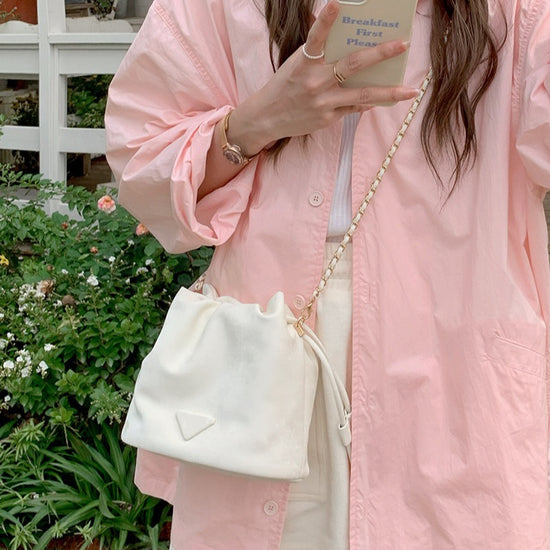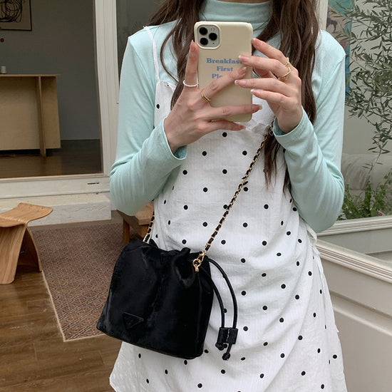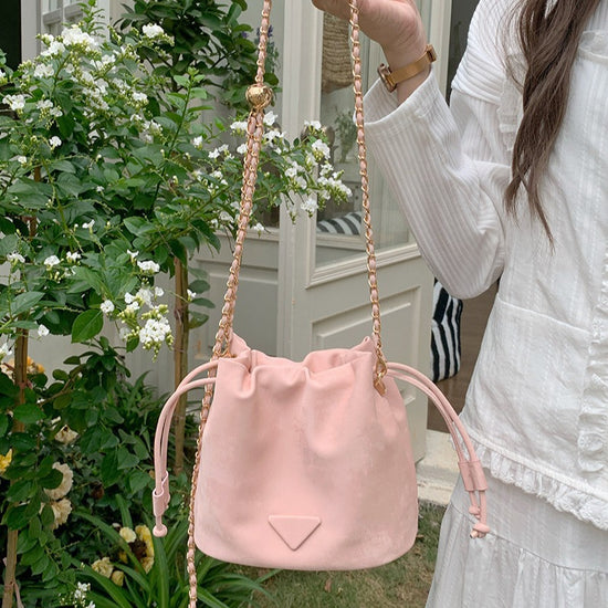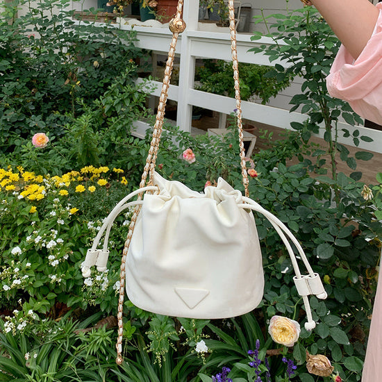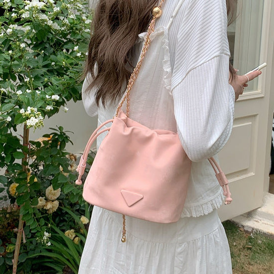 日韓流行|今年流行小包女2024新款夏天時尚抽帶單肩包百搭鏈條斜挎水桶包「9330#」24.04-1