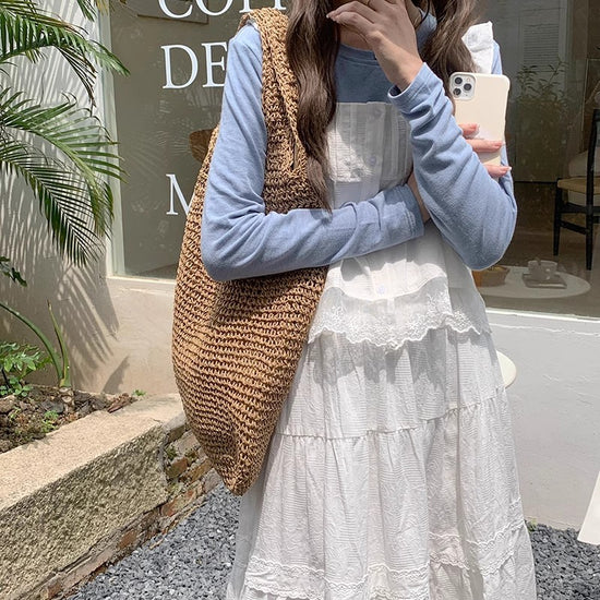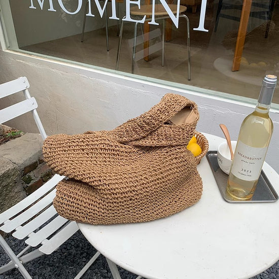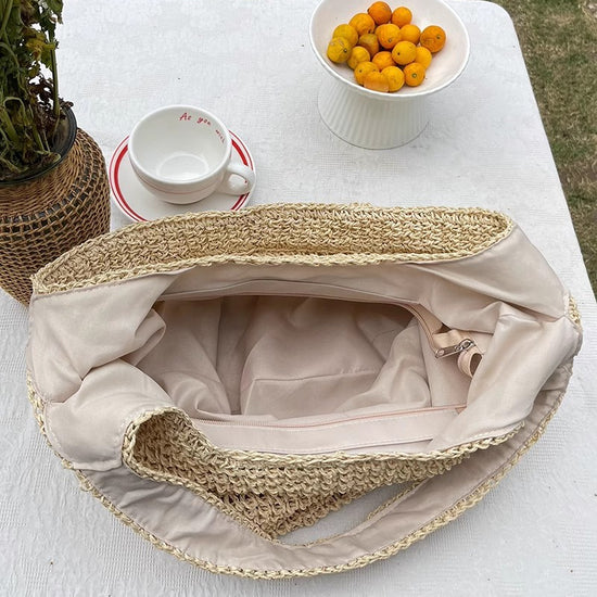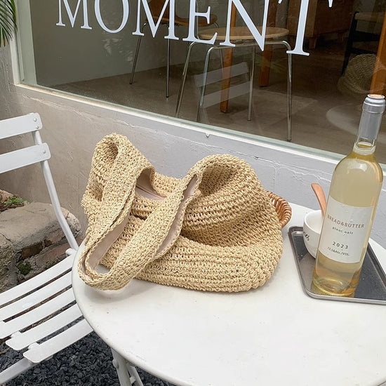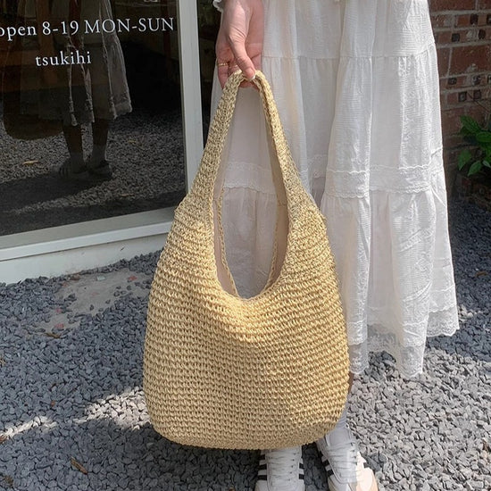 日韓流行|草編包女2024新夏季海邊度假沙灘包單肩包森系手工編織包大容量「9337#」24.04-3