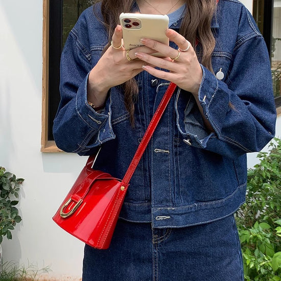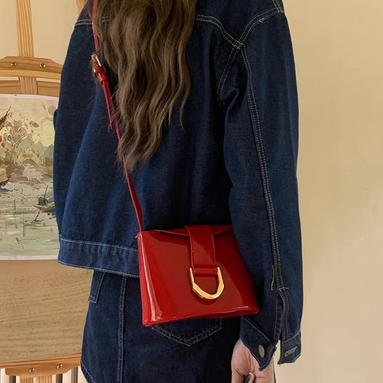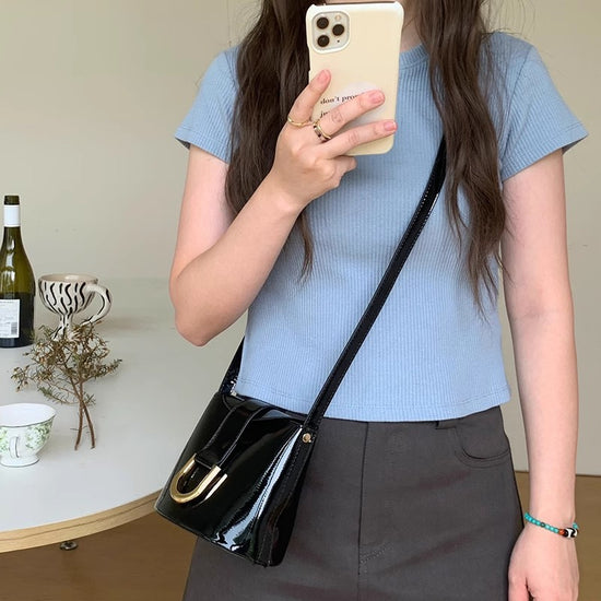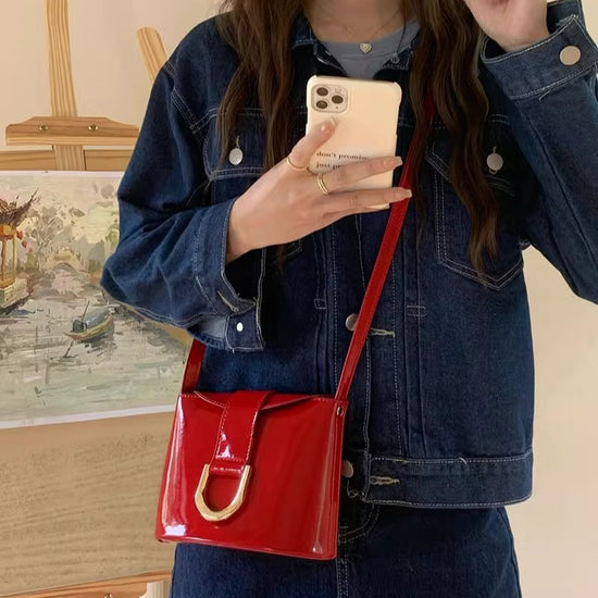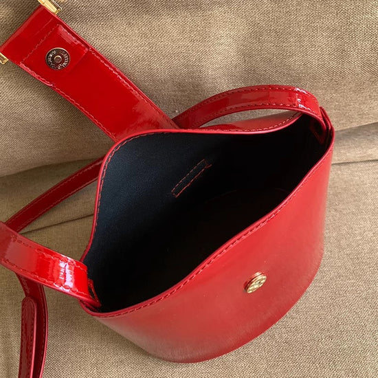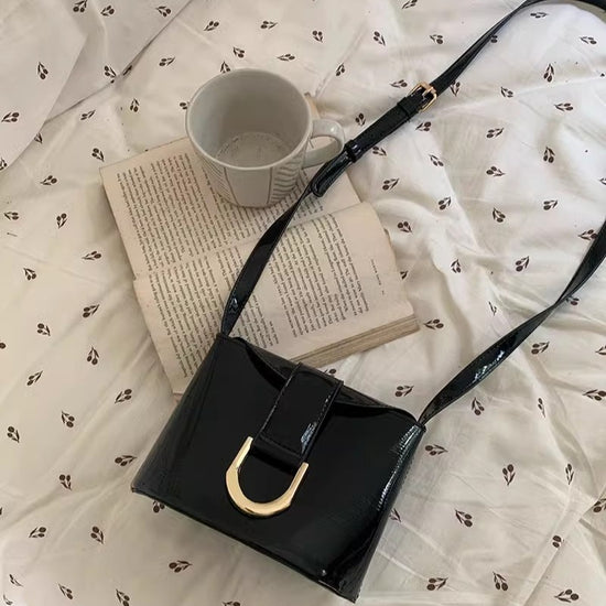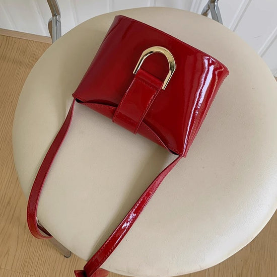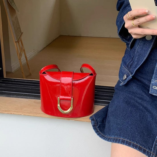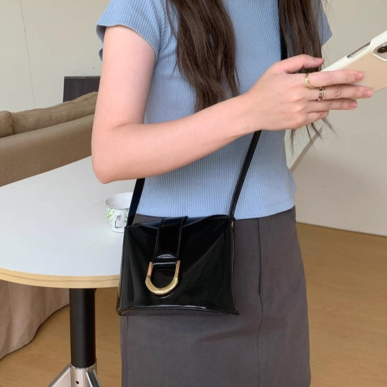 日韓流行|小眾復古漆皮水桶包女2024新款時尚百搭手機包馬蹄扣單肩斜挎包「9347#」24.04-4