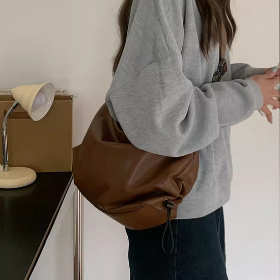 日韓流行|包包女大容量2024新款褶皺托特包今年流行高級感通勤寬肩帶斜挎包「9381#」24.05-3