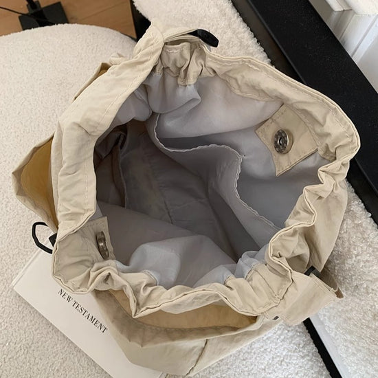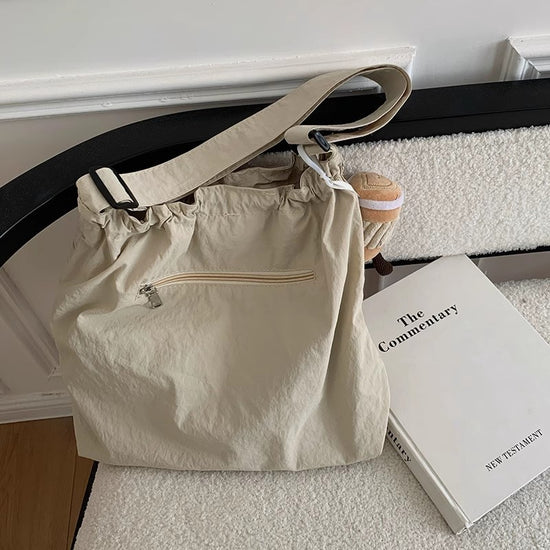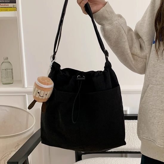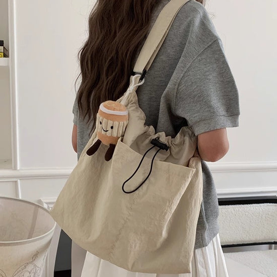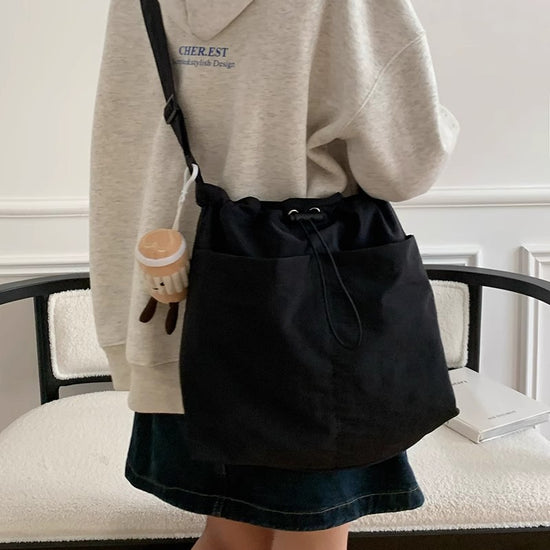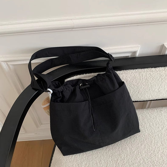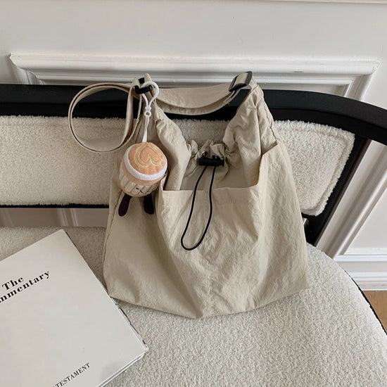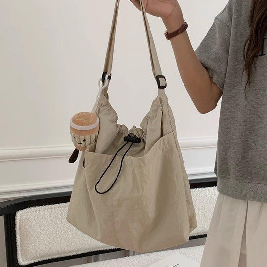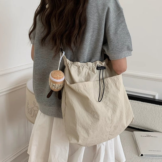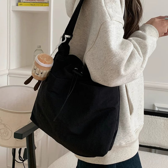 日韓流行|尼龍休閒抽繩大包包女2024新款時尚布包單肩包大容量托特包上課通勤斜挎包「9388#」24.05-4