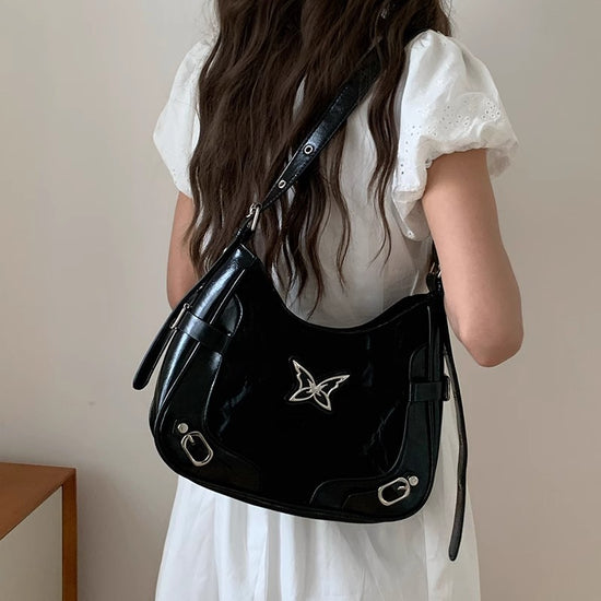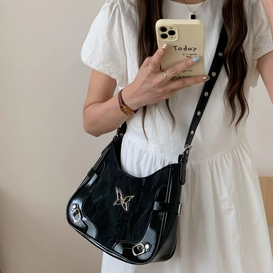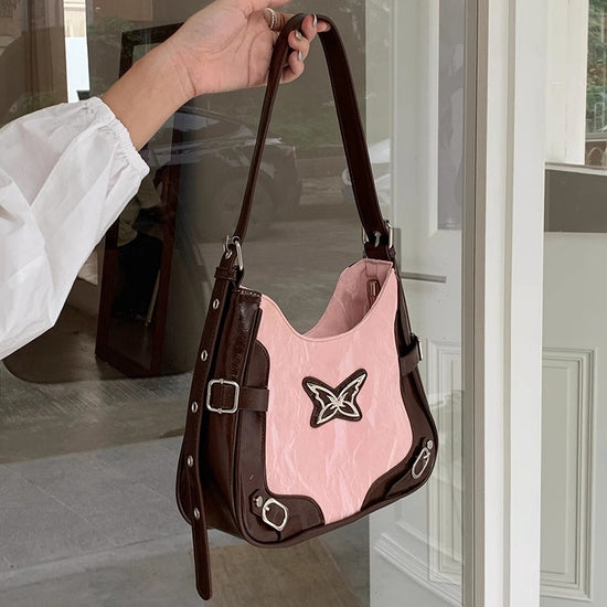 日韓流行|小眾復古蝴蝶撞色機車腋下包包女2024新款美式甜酷辣妹單肩斜挎包「9393#」24.05-4