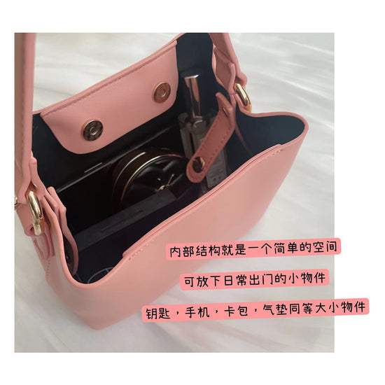 日韓流行|小眾自製夏新品草莓粉斜挎水桶包迷你手提包韓氣質高級感單肩小包「9399#」24.06-1