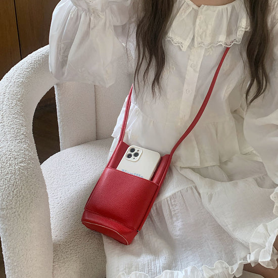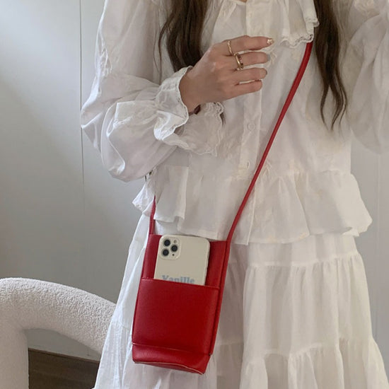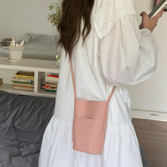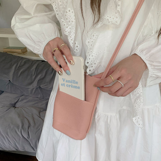 日韓流行|韓國ins軟皮手機包女精緻小巧簡約斜挎小包包百搭迷你散步手機袋「9416#」24.06-3