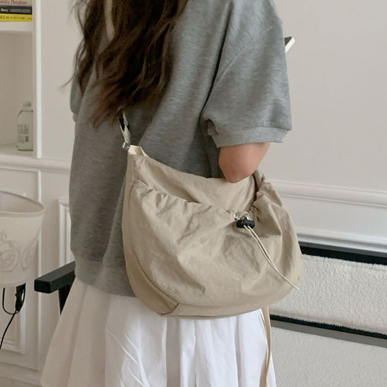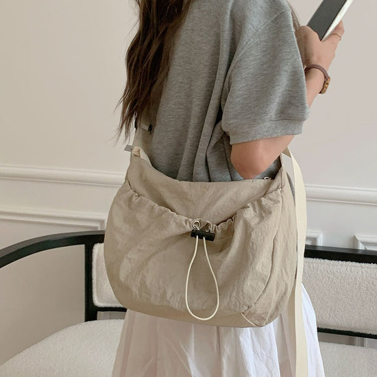 日韓流行|尼龍輕量褶皺包包女裝2024新款流行時尚休閒單肩包大容量斜背包上課通勤包「9425#」24.07-1