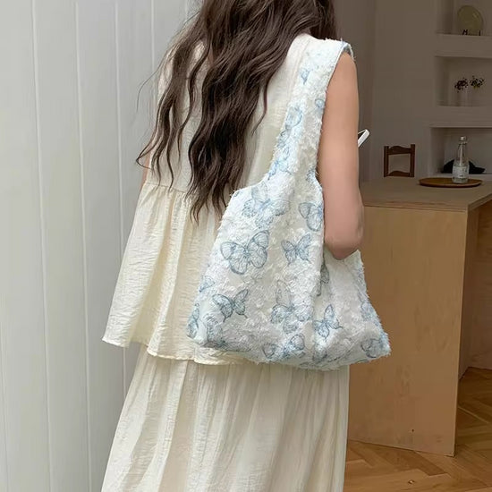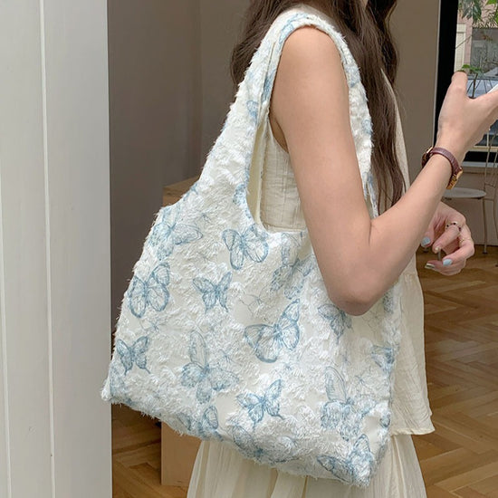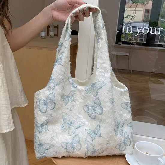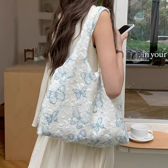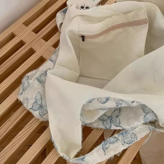 日韓流行|蕾絲蝴蝶帆布包包女式2024新款潮韓版文藝托特包學生上課大容量包「9428#」24.07-1