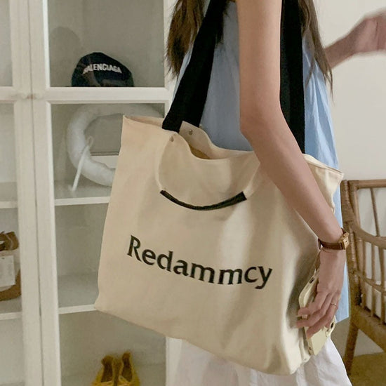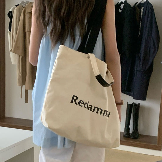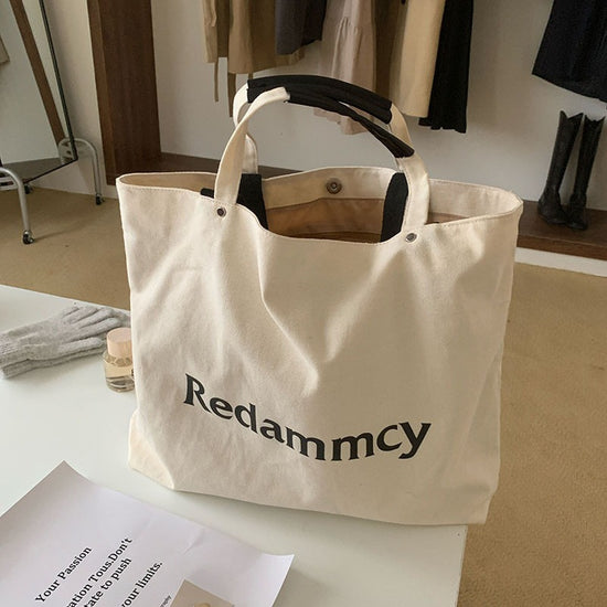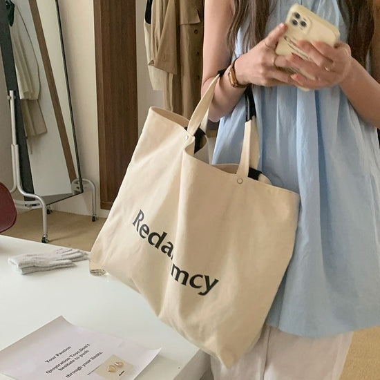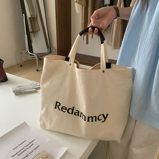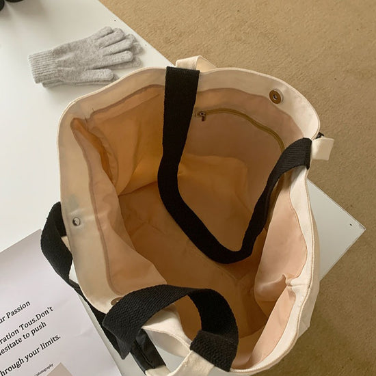 日韓流行|2024韓版休閒百搭通勤帆布包女大容量單肩包手提托特包學生黑白簡約字母帆布袋「9457#」24.08-4