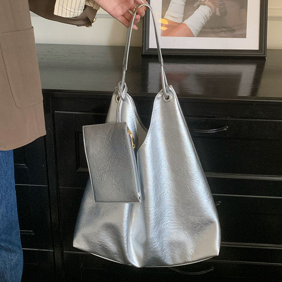 日韓流行|韓國小眾附小袋托特包包女式2024新款潮時尚腋下包休閒大容量單肩水桶包「9464#」24.09-2