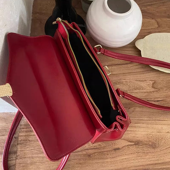 日韓流行|結婚喜慶紅色包包女新款質感新娘包百搭手提包大容量單肩包「9484#」25.01-1