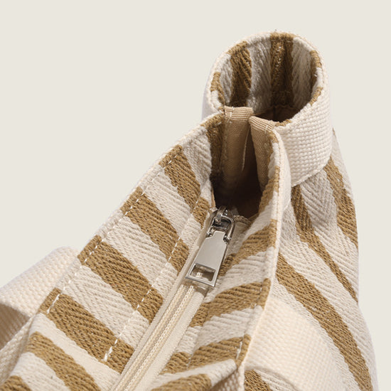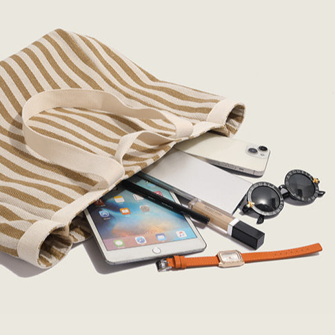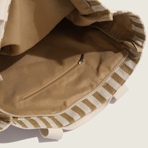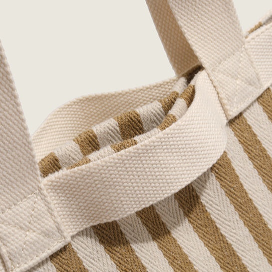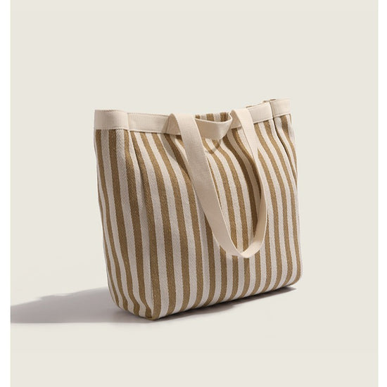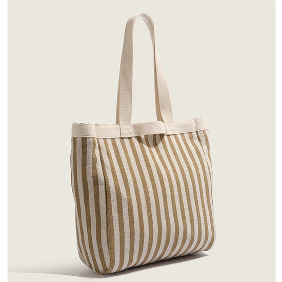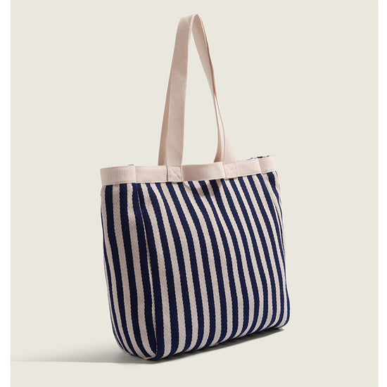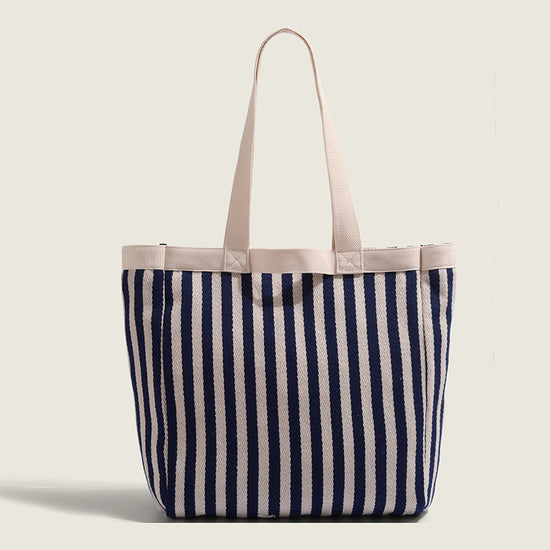 日韓流行|大容量簡約條紋帆布包女文藝慵懶風肩包休閒購物包手提托特包「9544#」25.03-1