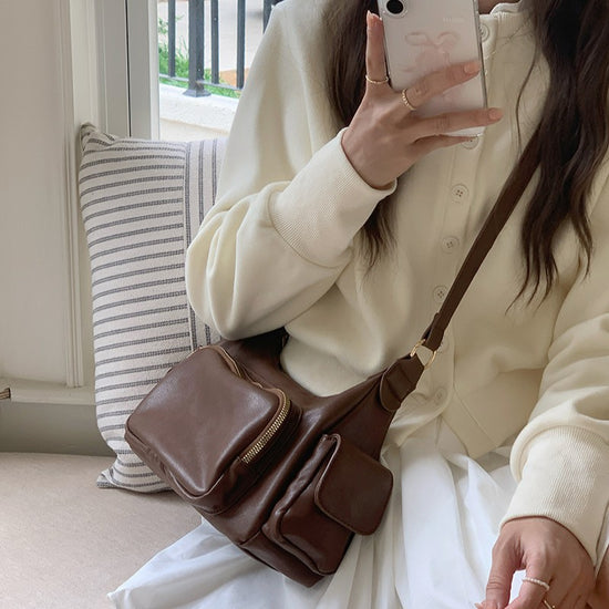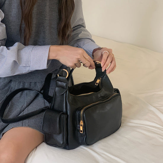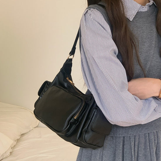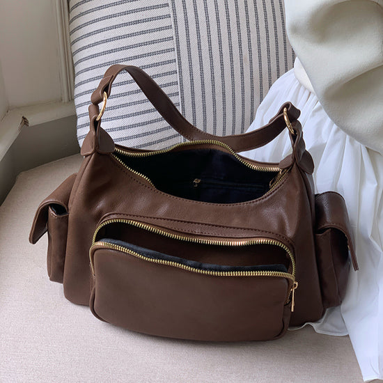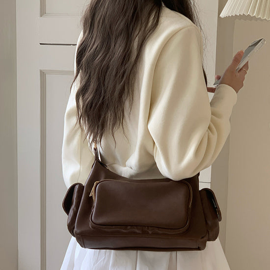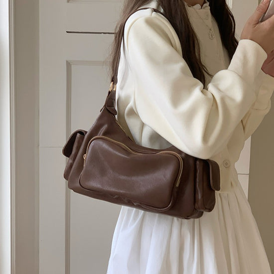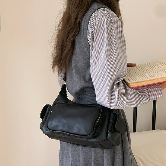 日韓流行|小眾設計美式復古機車包美拉德大容量單肩包多口袋腋下包女手提包「9548#」25.03-1