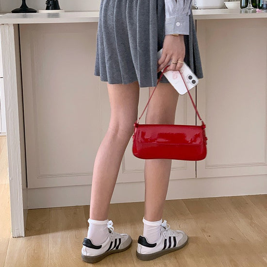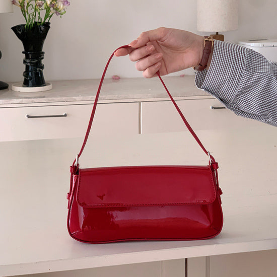 日韓流行|爆款紅色法國長棍腋下包2025春季新品時尚簡約通勤翻蓋復古單肩包「9551#」25.03-3