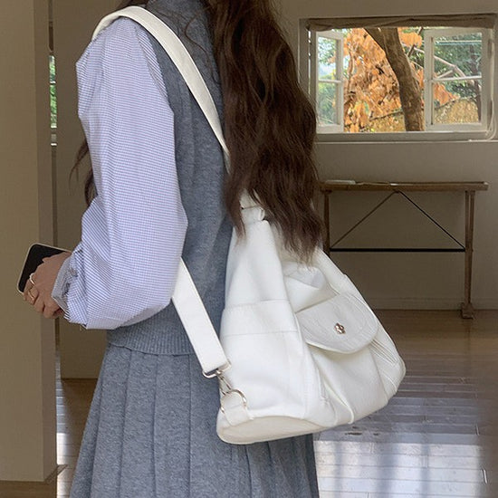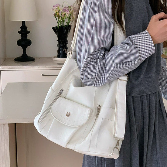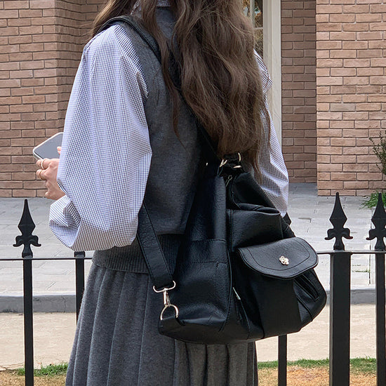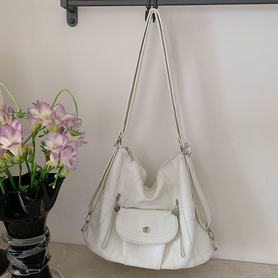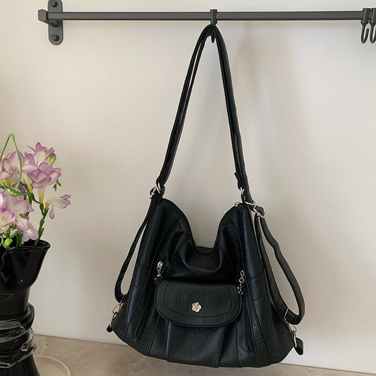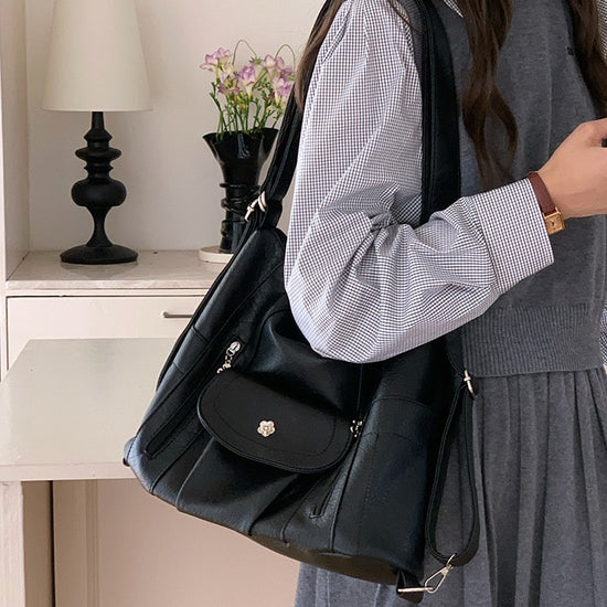 日韓流行|機車辣妹雙肩包簡約復古軟皮大容量托特包多功能可調節單肩斜挎包「9552#」25.03-2