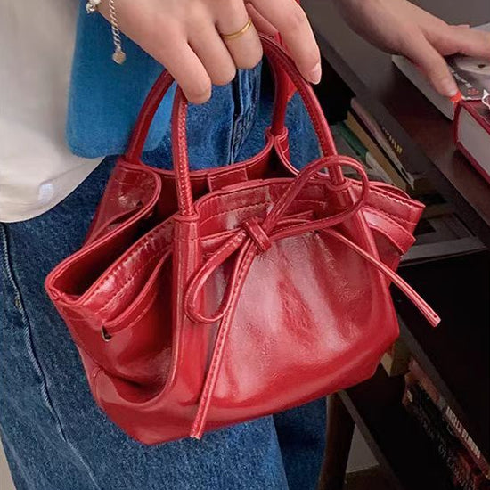 日韓流行|韓國小眾手提菜籃包包女2025春夏新款潮時尚水桶包蝴蝶結斜挎包「9568#」25.04-2