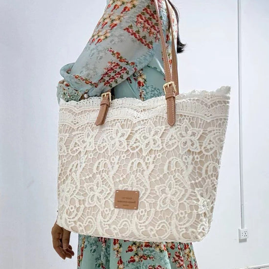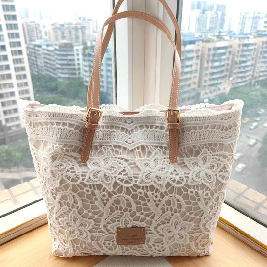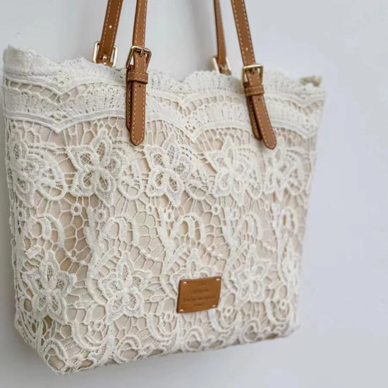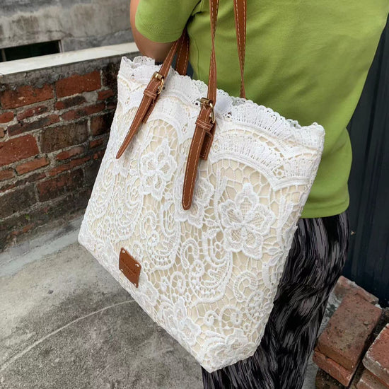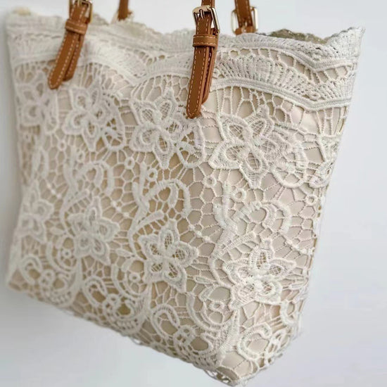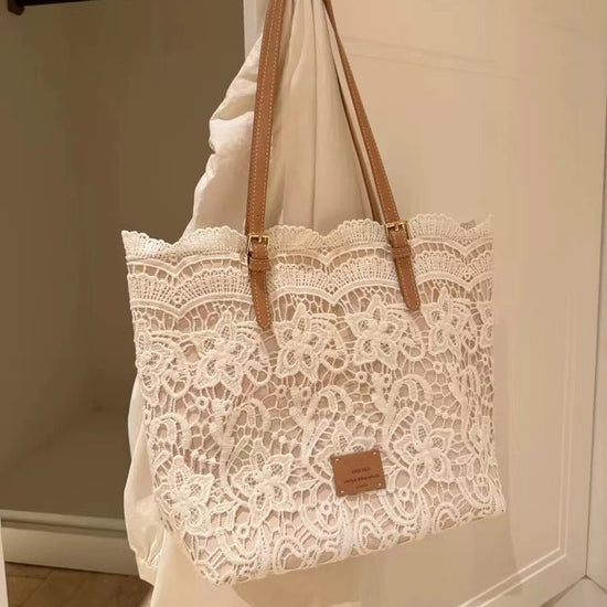 日韓流行|日系仙女蕾絲托特包2025新款韓版文藝百搭ins大容量手提單肩包「9579#」25.04-3