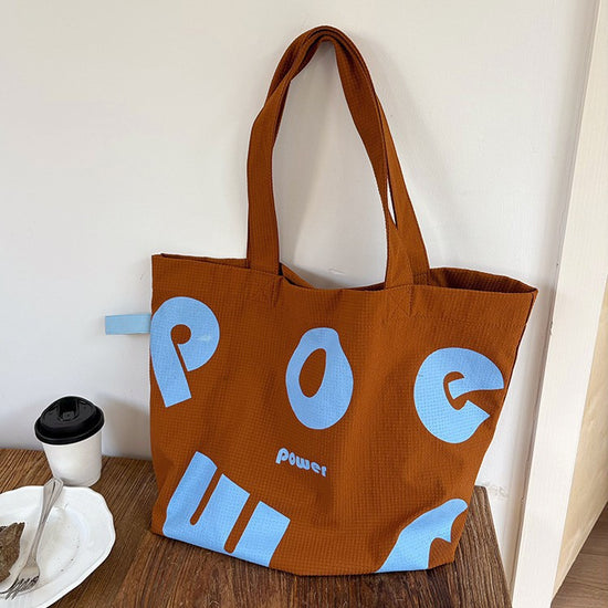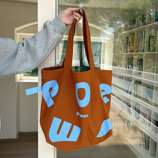 日韓流行|2025年新潮春季學院運動風撞色字母托特包大容量單肩休閒時尚女包「9589#」25.04-4